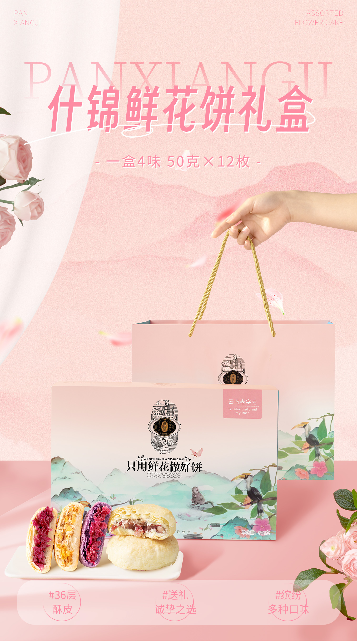 潘祥记官方旗舰店[600g什锦鲜花饼]礼盒装