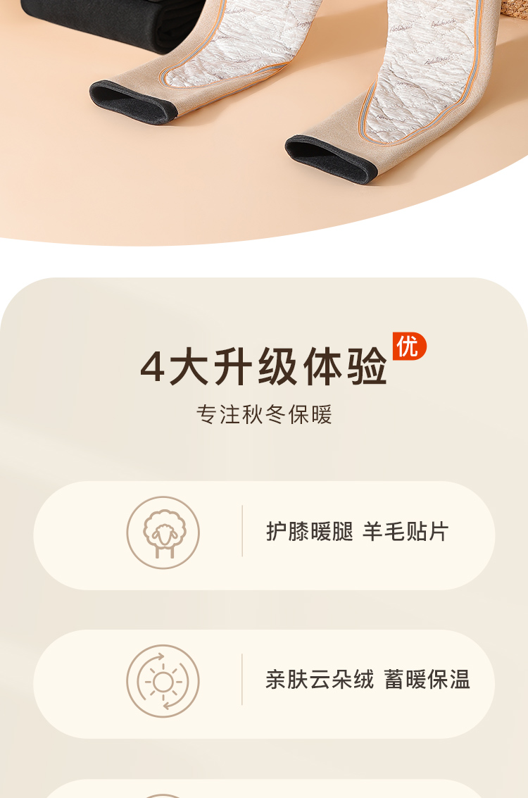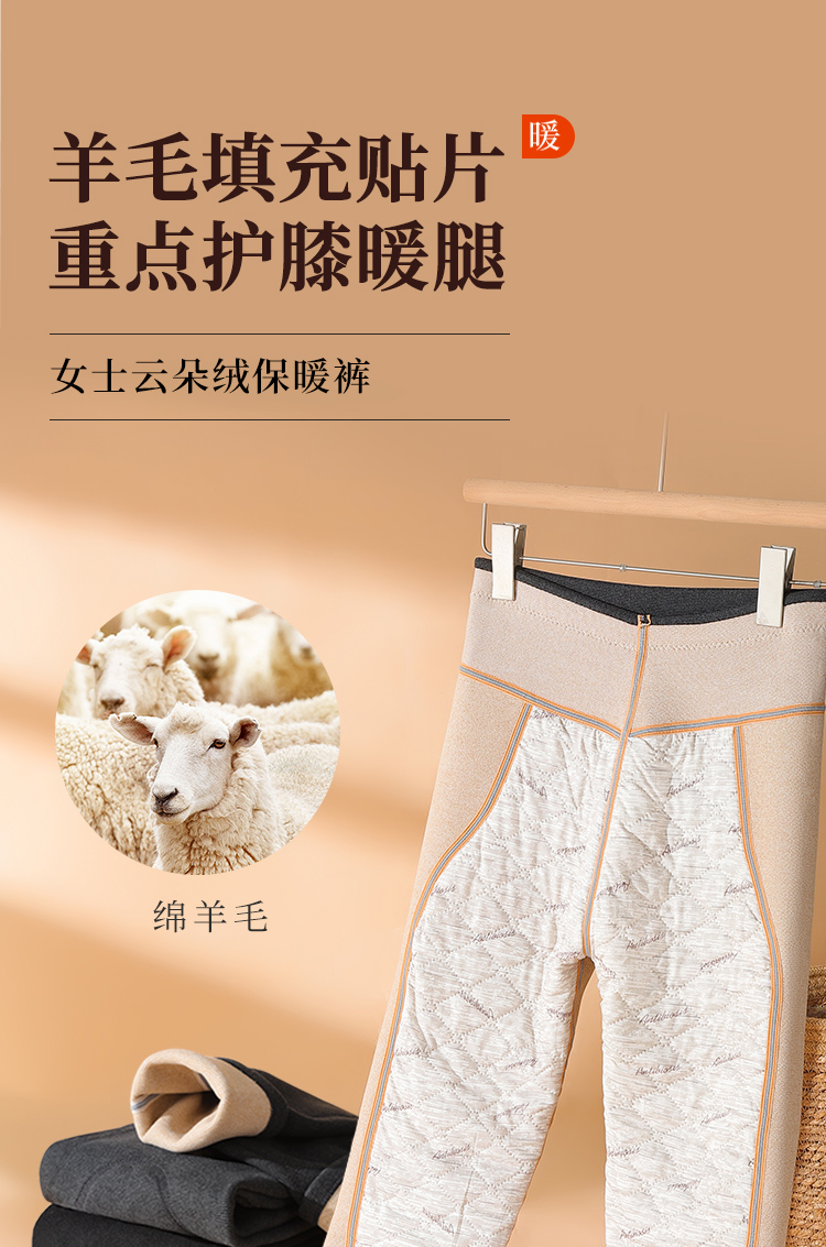 【100%羊毛贴片】500g加厚女士保暖裤高腰暖腹抗寒秋裤女士云朵护膝保暖裤