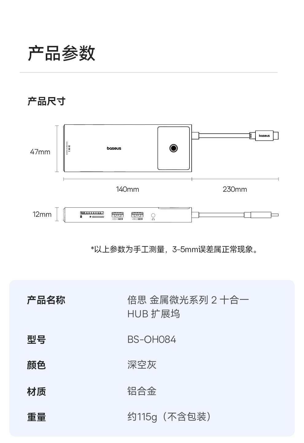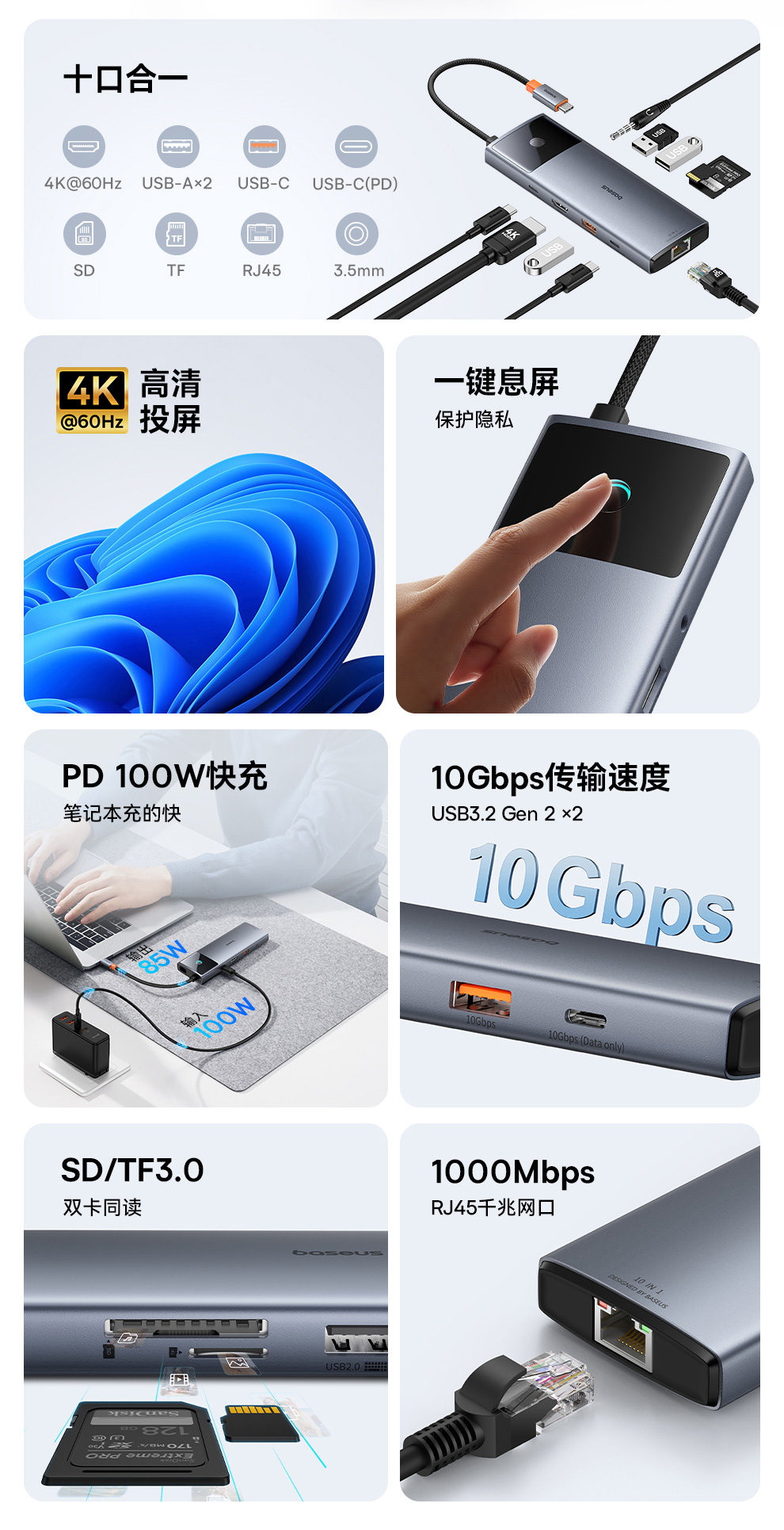 【十一专享】倍思 金属微光系列 2 十合一 HUB 扩展坞