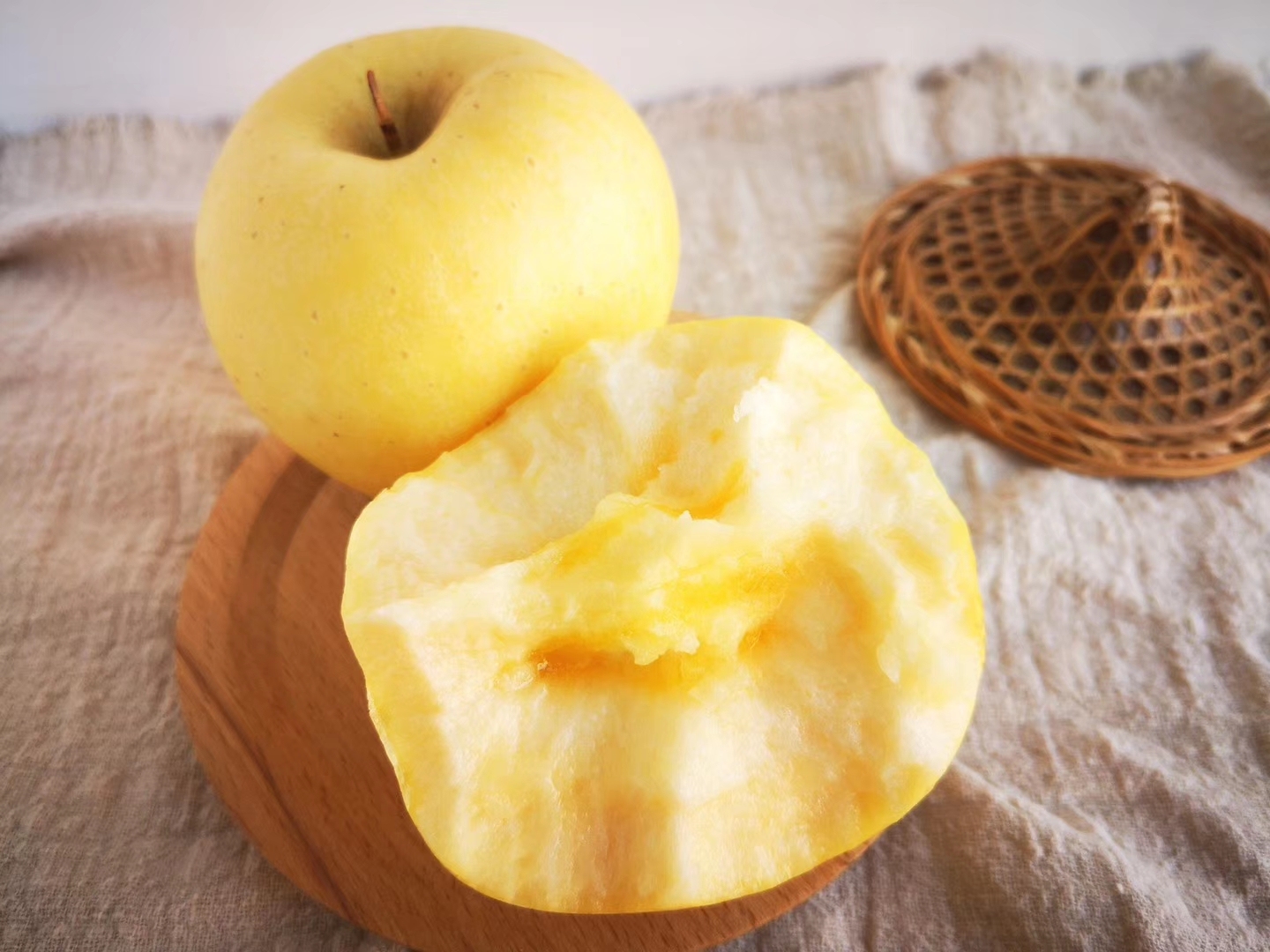冬恋苹果果皮金黄,果肉淡黄,承袭了胶东地区苹果"皮薄肉脆"的优良传统,即使不削皮,也不会影响口感。