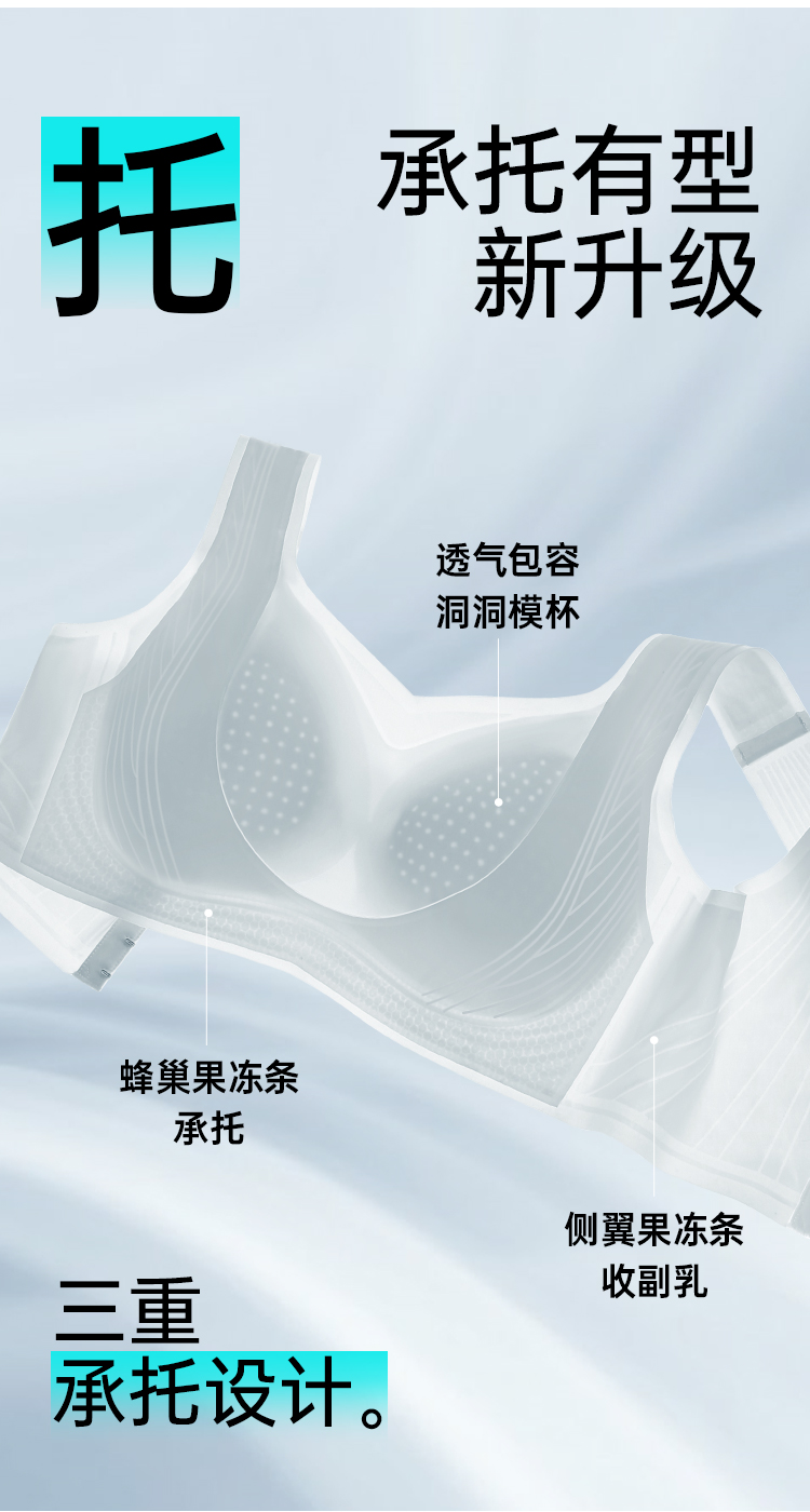 💗【提拉女王圆润款B-F】【7D超细纤维透气】润微洞洞模杯透气风王面料蜂巢+侧边果冻条文胸内衣 提拉薄纱【提拉系列】