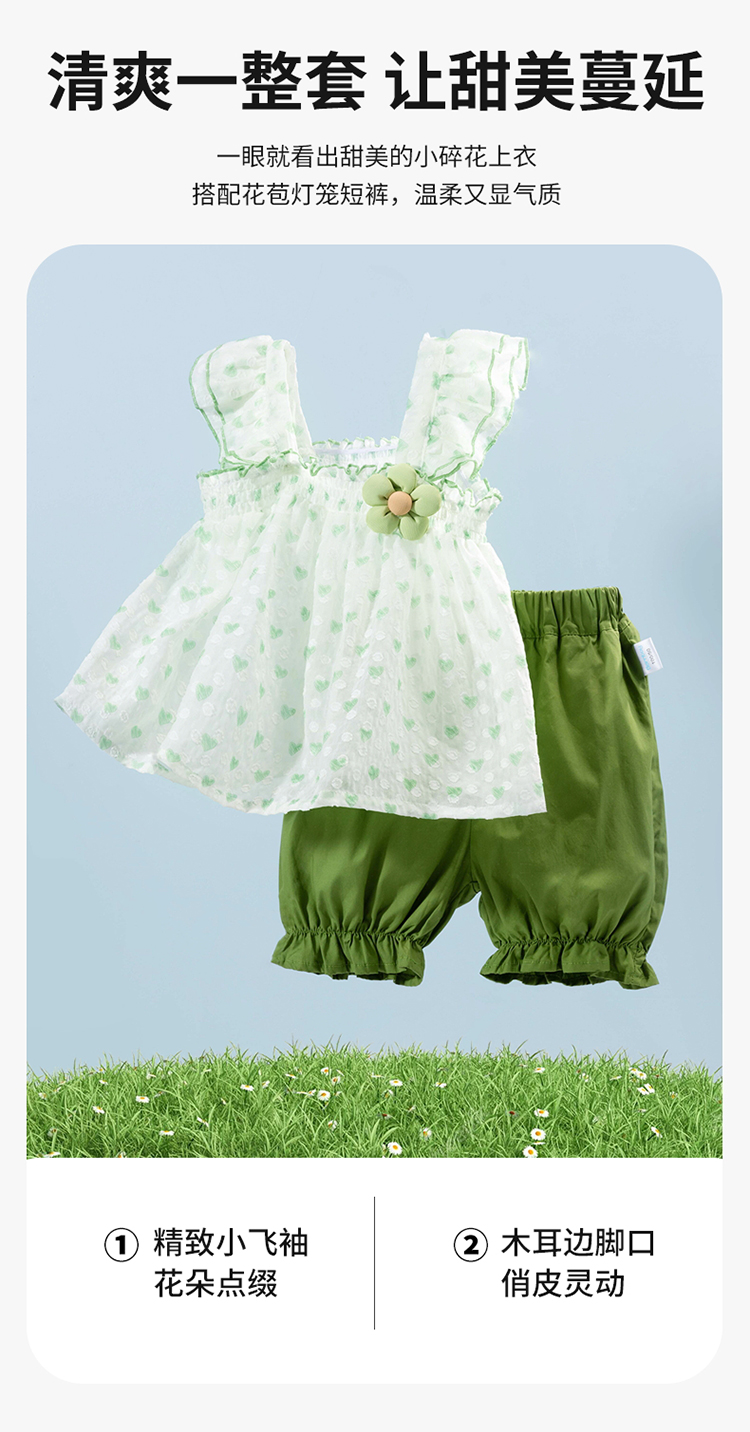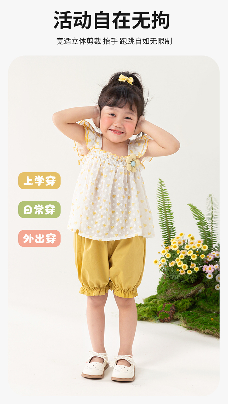 贝贝怡童装女童夏季套装甜美两件套新款宝宝短裤无袖t恤儿童夏装