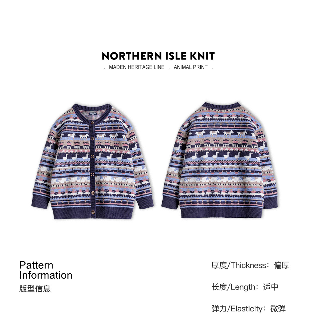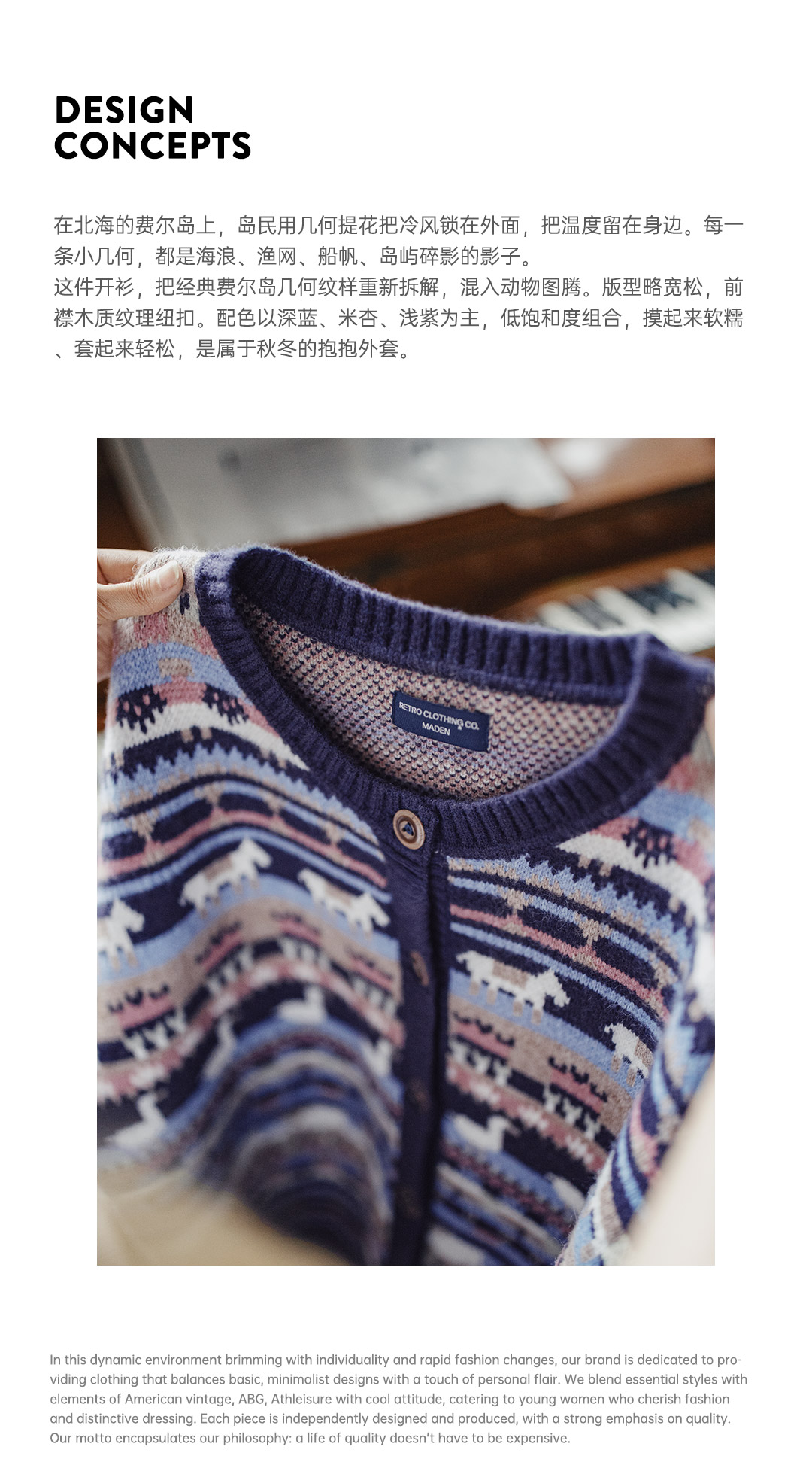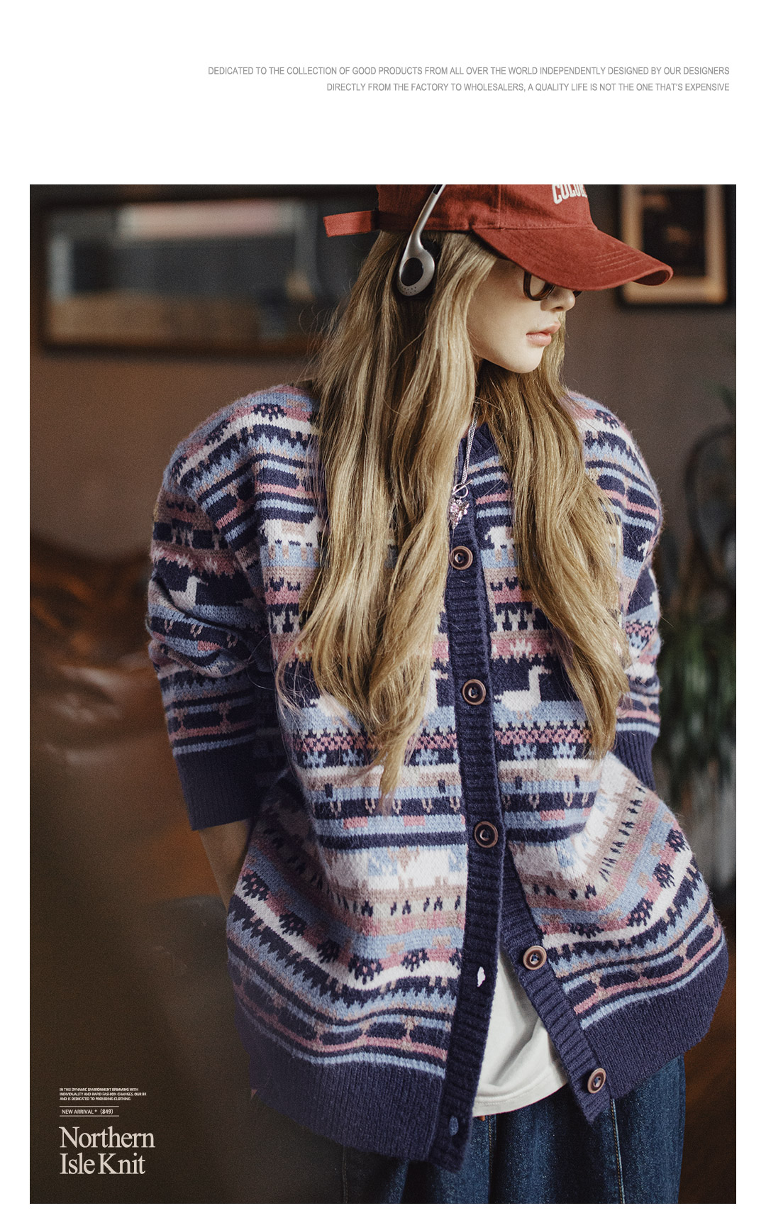 马登动物图案复古宽松加厚费尔岛针织提花毛衣开衫外套上衣女秋冬