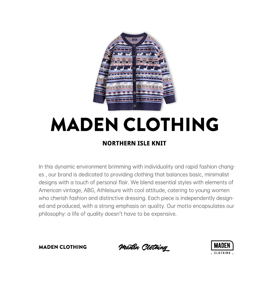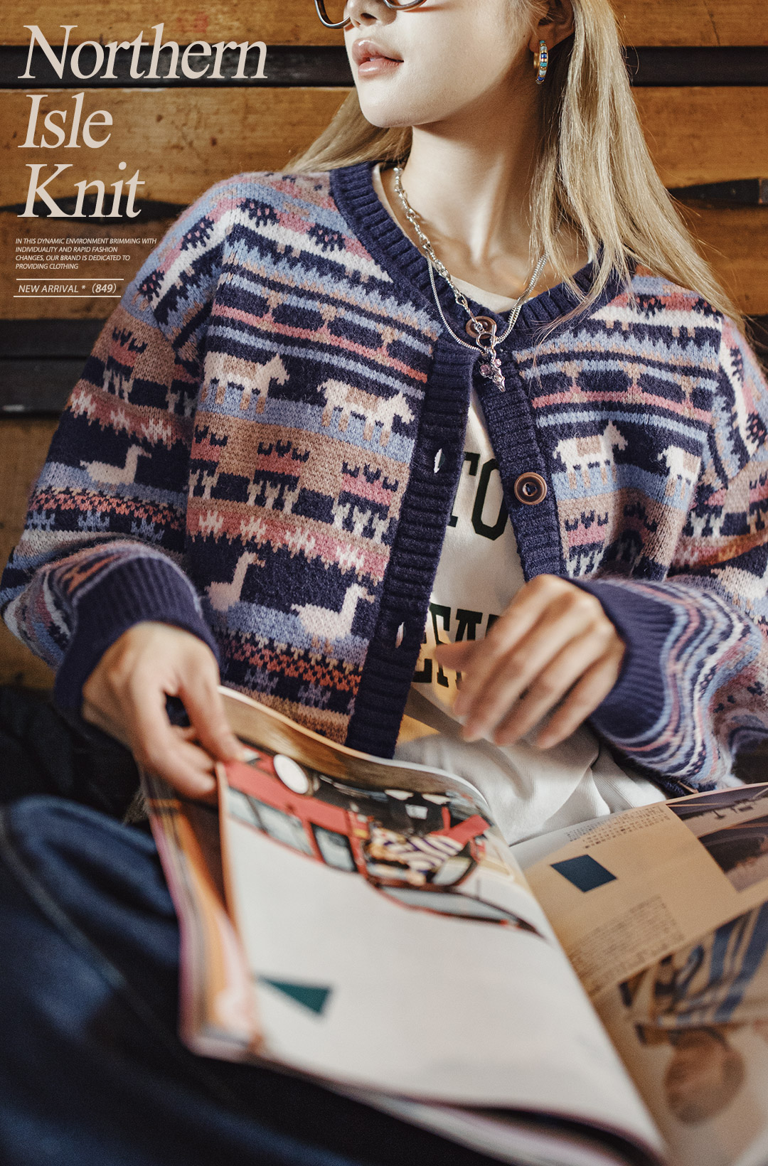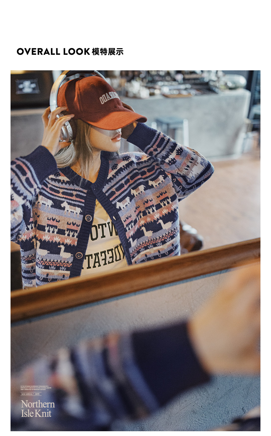 马登动物图案复古宽松加厚费尔岛针织提花毛衣开衫外套上衣女秋冬