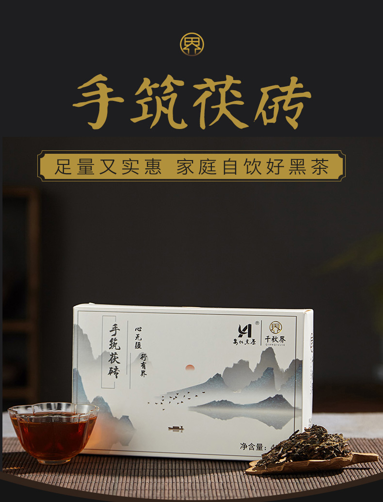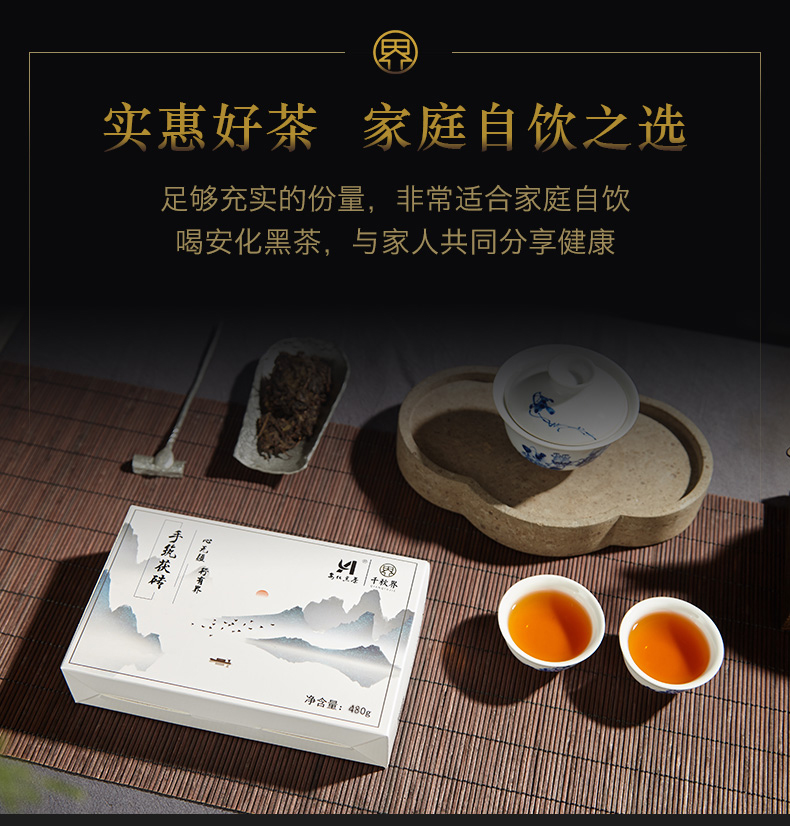 【安化黑茶】千秋界丨手筑茯砖 湖南安化黑茶 2017年 480g 金花繁茂,菌花香浓郁