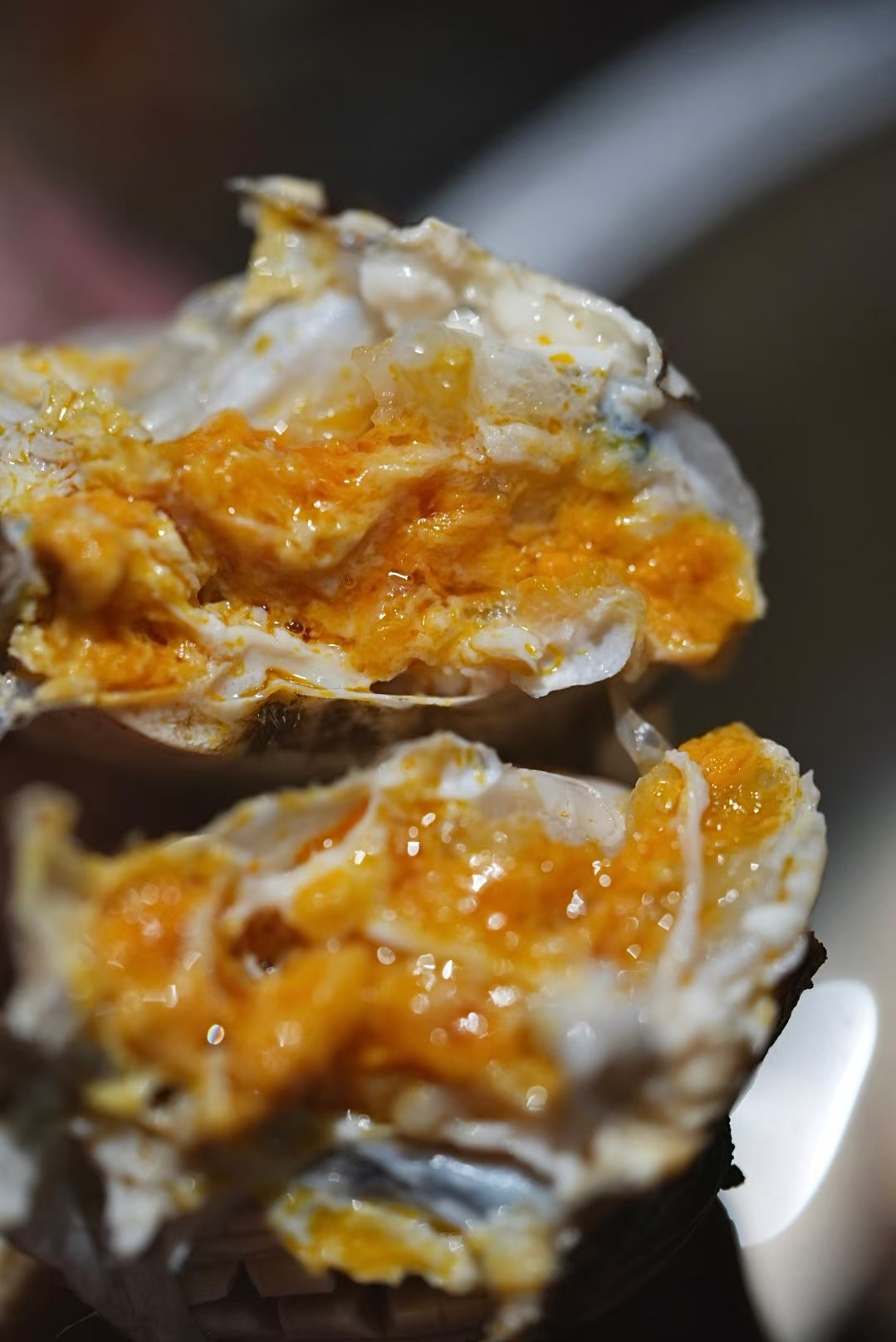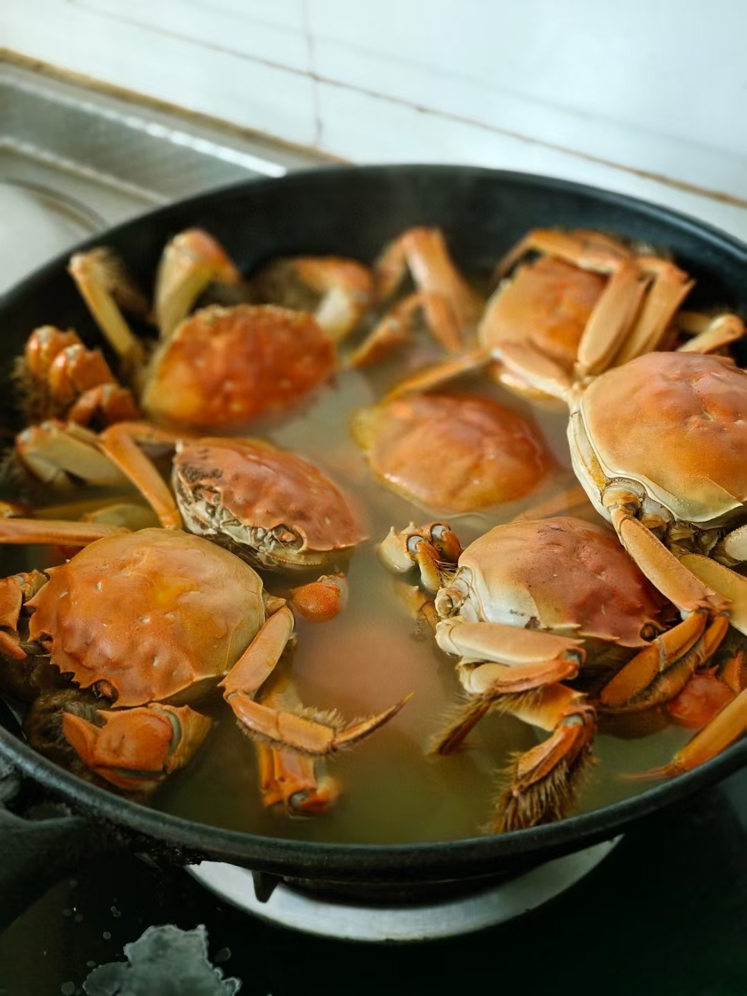 【做法】这个大闸蟹比较大,冷水下锅要25分钟关火,再闷5分钟