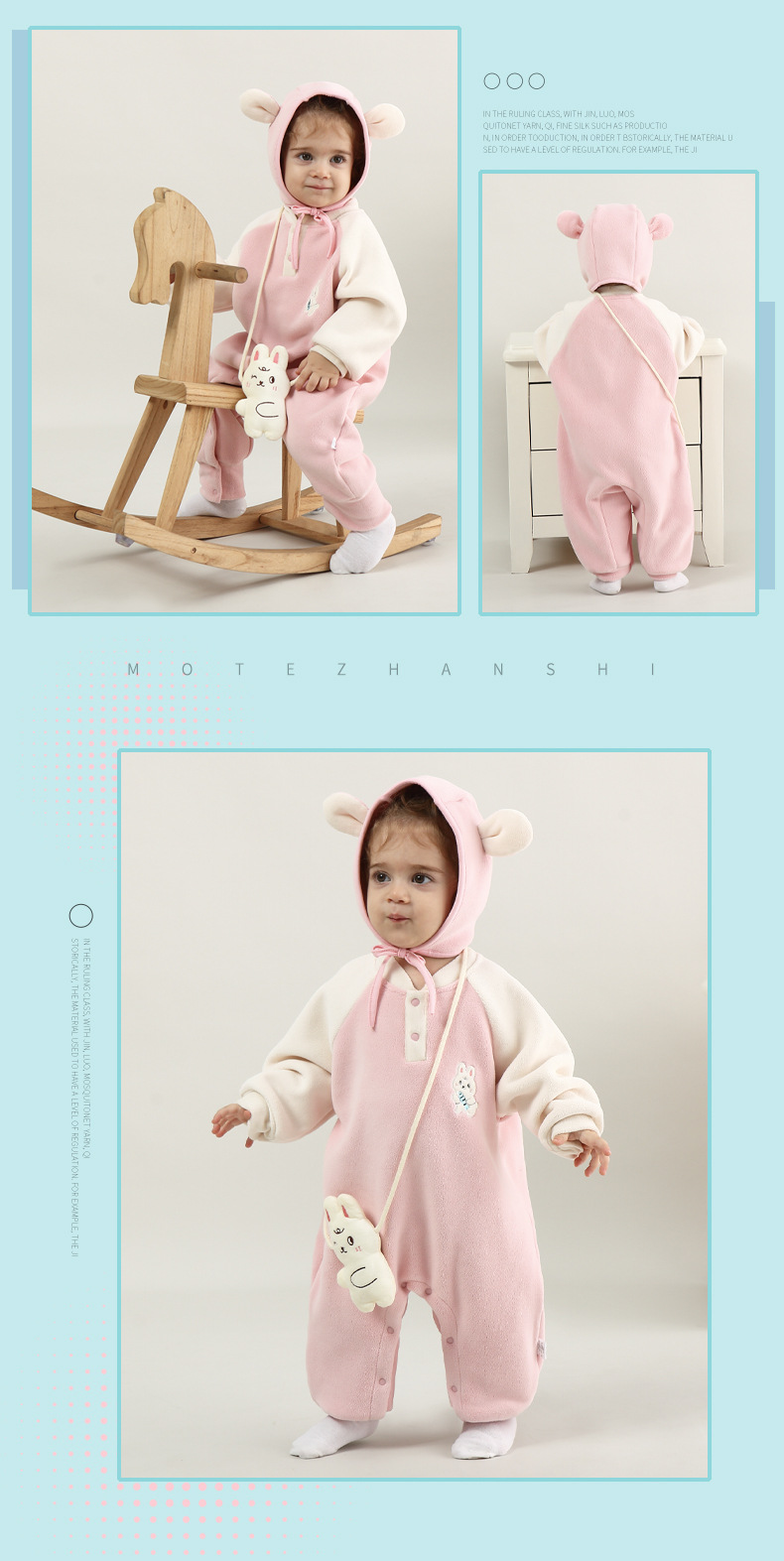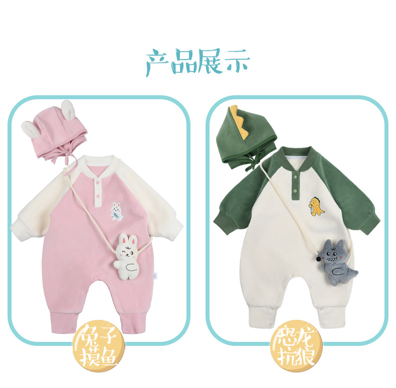 【赠帽子~毛绒软绵 舒适保暖】宝宝连体衣秋冬款奥丽绒婴儿爬爬服A类新生儿恐龙扛狼造型外出服