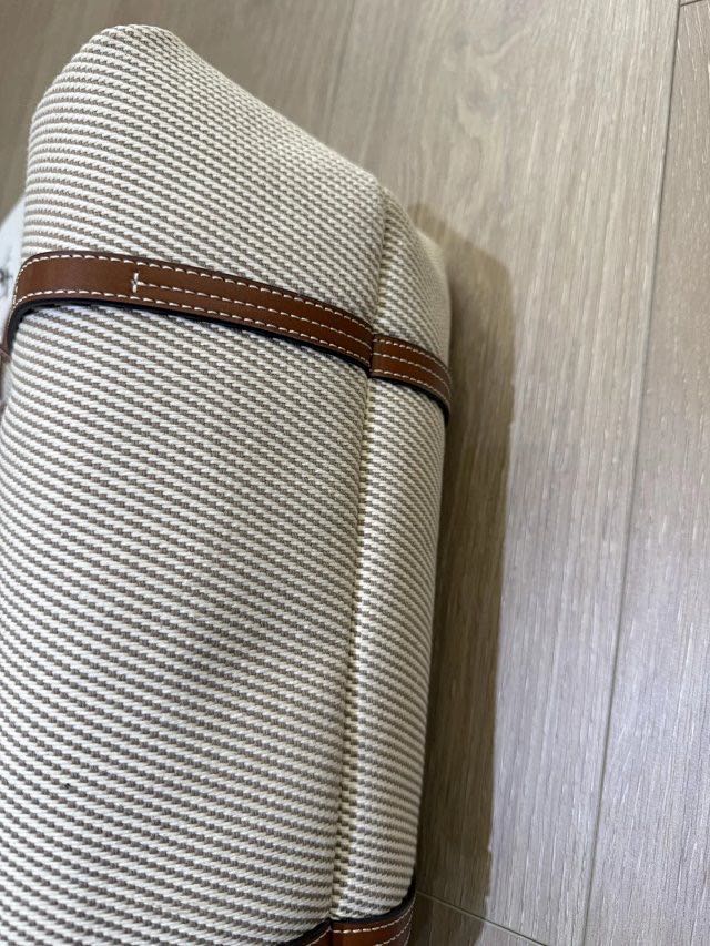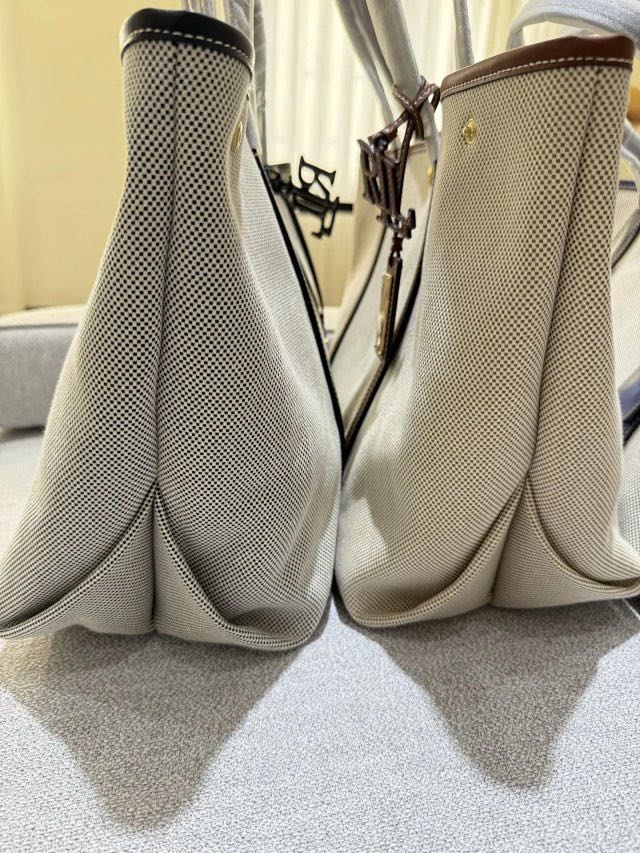 更绝的是它的设计巧思,旁边的按扣是整个包包的灵魂所在。当你打开按扣,它就是一只正常的tote,简约随性,适合日常通勤、购物、休闲出行,搭配简约的T恤、牛仔裤,轻松展现出美式休闲风。扣上按扣,神奇的事情发生了,它瞬间变身爱马仕花园包的既视感,上窄下宽的梯形包身,线条流畅,优雅大气 ,这时候搭配一条连衣裙,无论是参加下午茶聚会还是约会,都能轻松拿捏精致感。