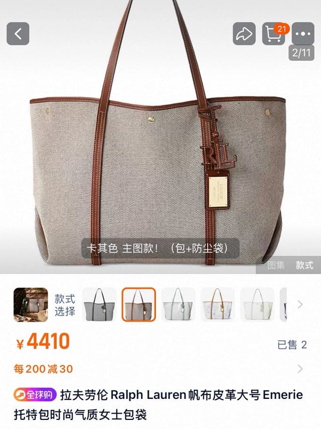 拉夫帆布配皮大号Emerie托特包大容量单肩包腋下托特包 金牌托特包