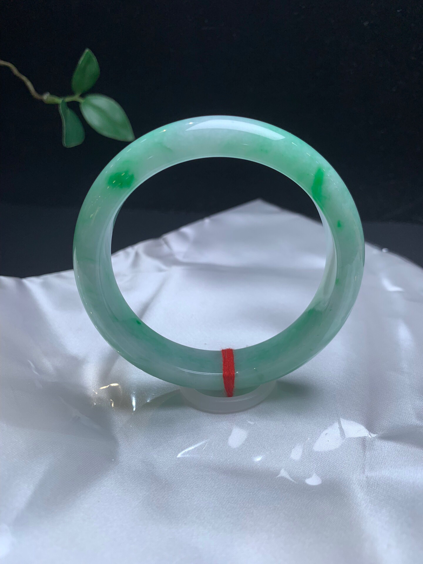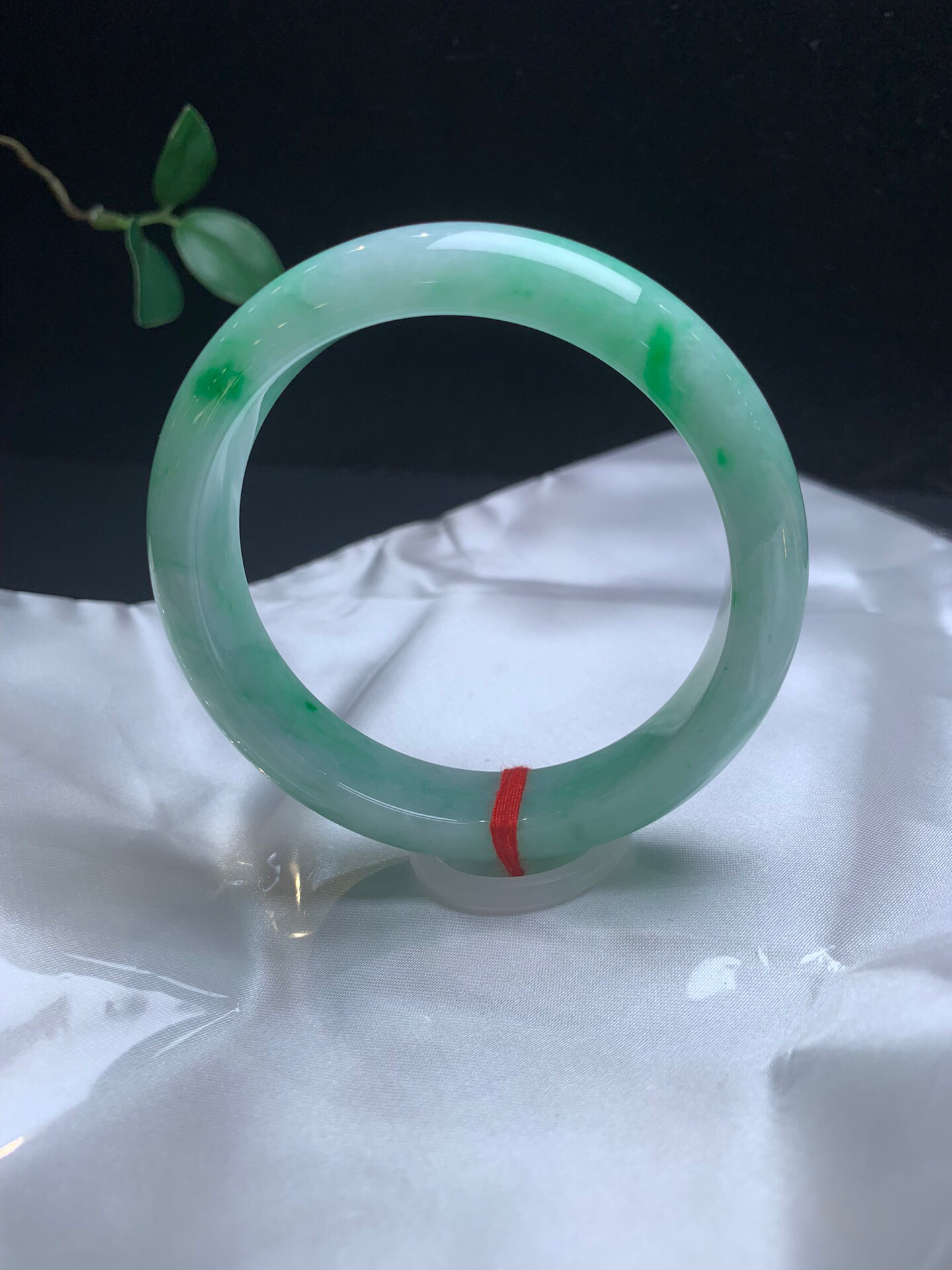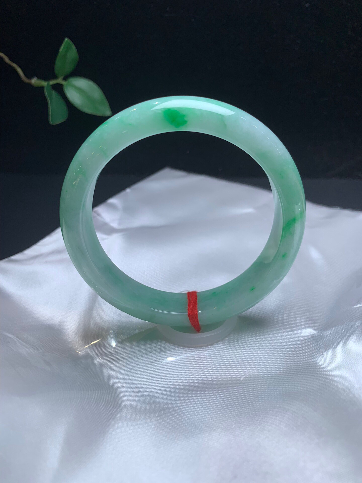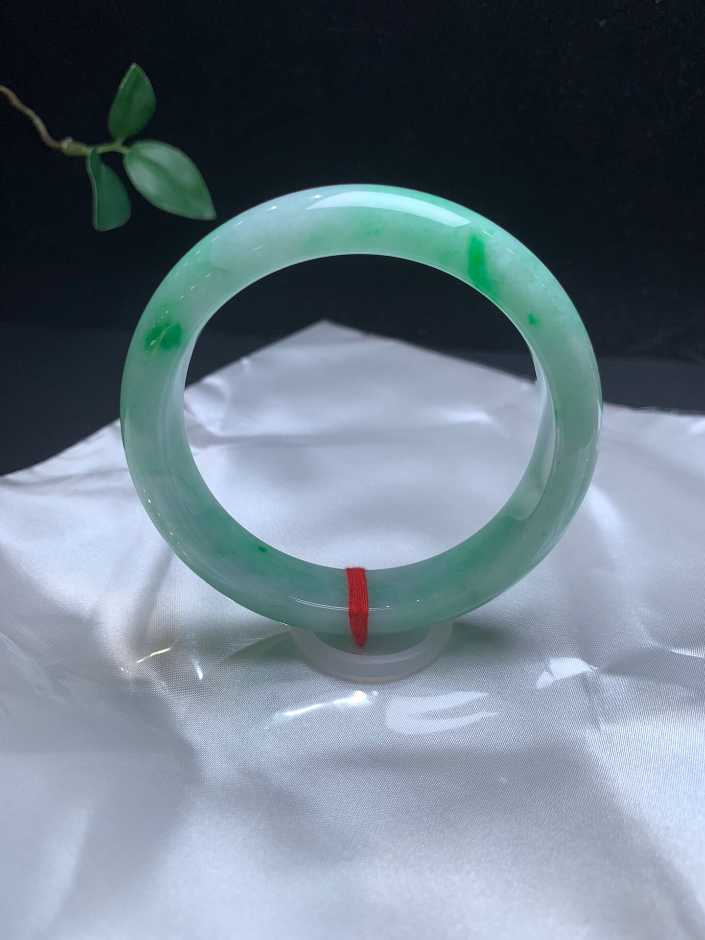 611731,58.5飘绿正圈手镯,13.6-8.3mm,整圈带绿底飘辣绿,干净清爽