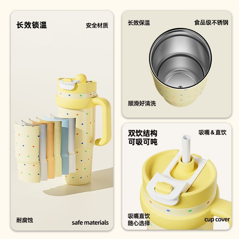 【1000ML❗️大容量冰霸杯】食品级不锈钢内胆,双饮口可吸可吨,长效保温保冷,带把手带吸管,健身通勤夏日神器,冰霸杯巨无霸大容量吸管保温杯高颜值手柄杯子L