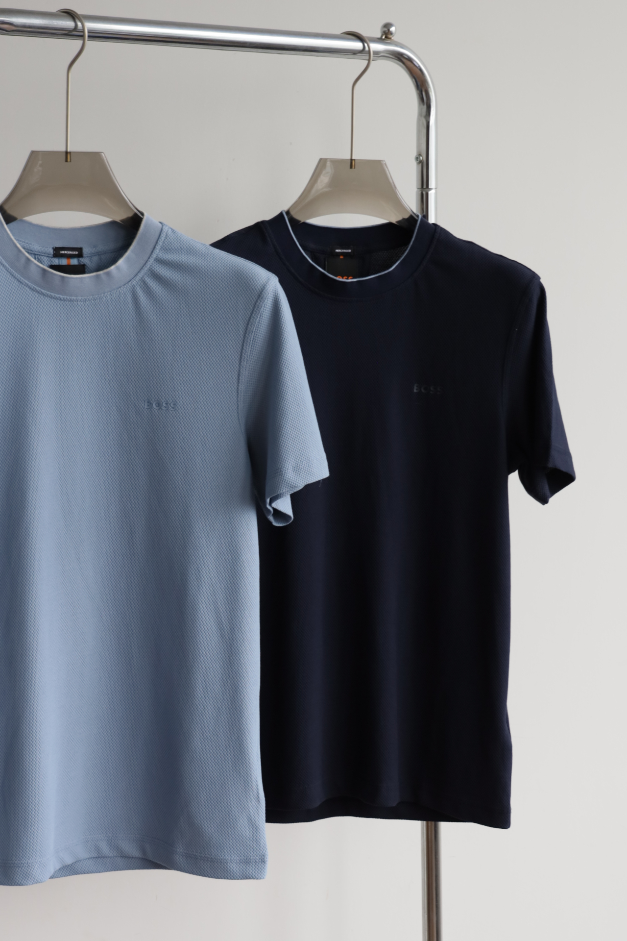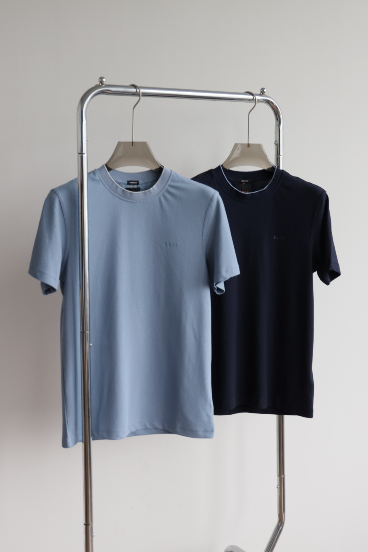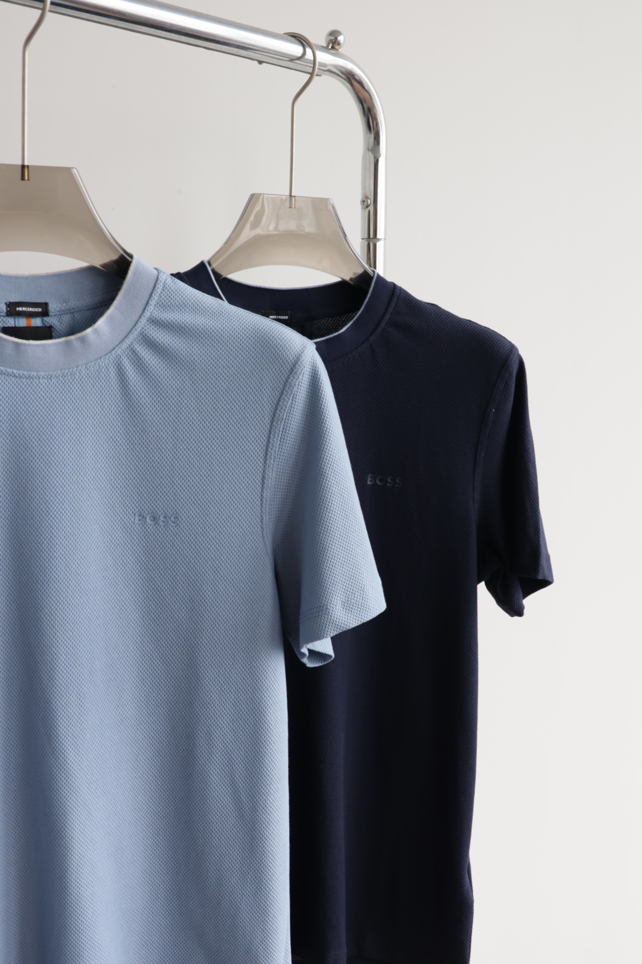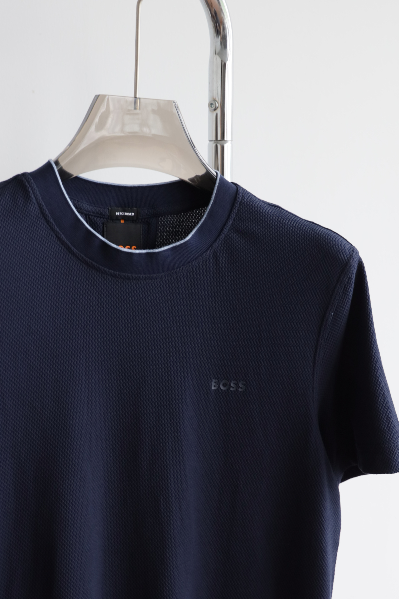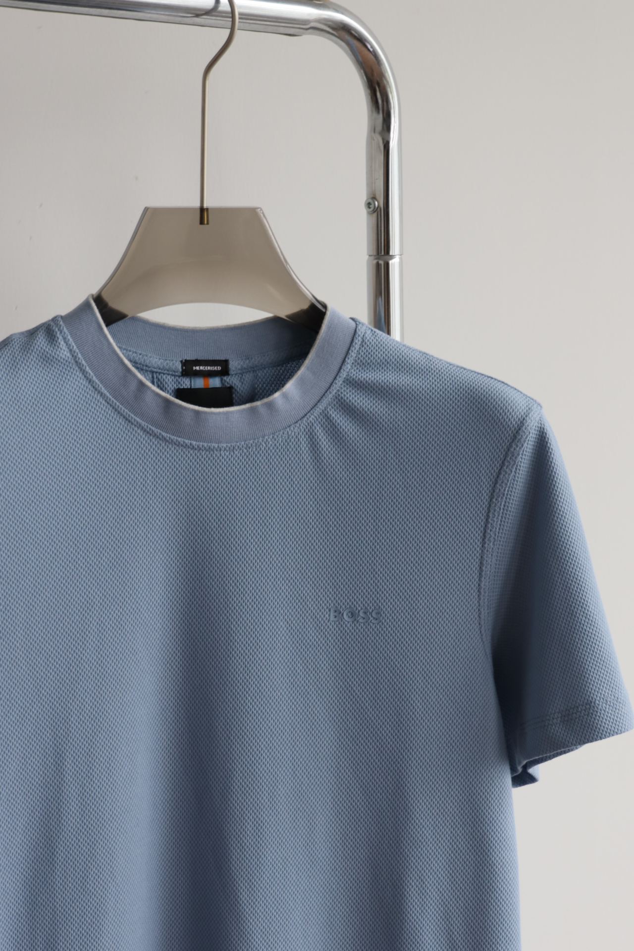 H.B 网格泡泡纱 圆领短袖T恤