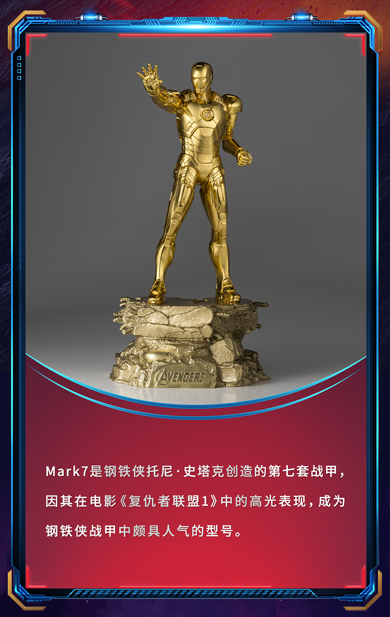 铜师傅《钢铁侠MK7(大号金箔版)》漫威系列限量手办 复仇者联盟桌面铜摆件