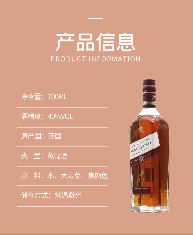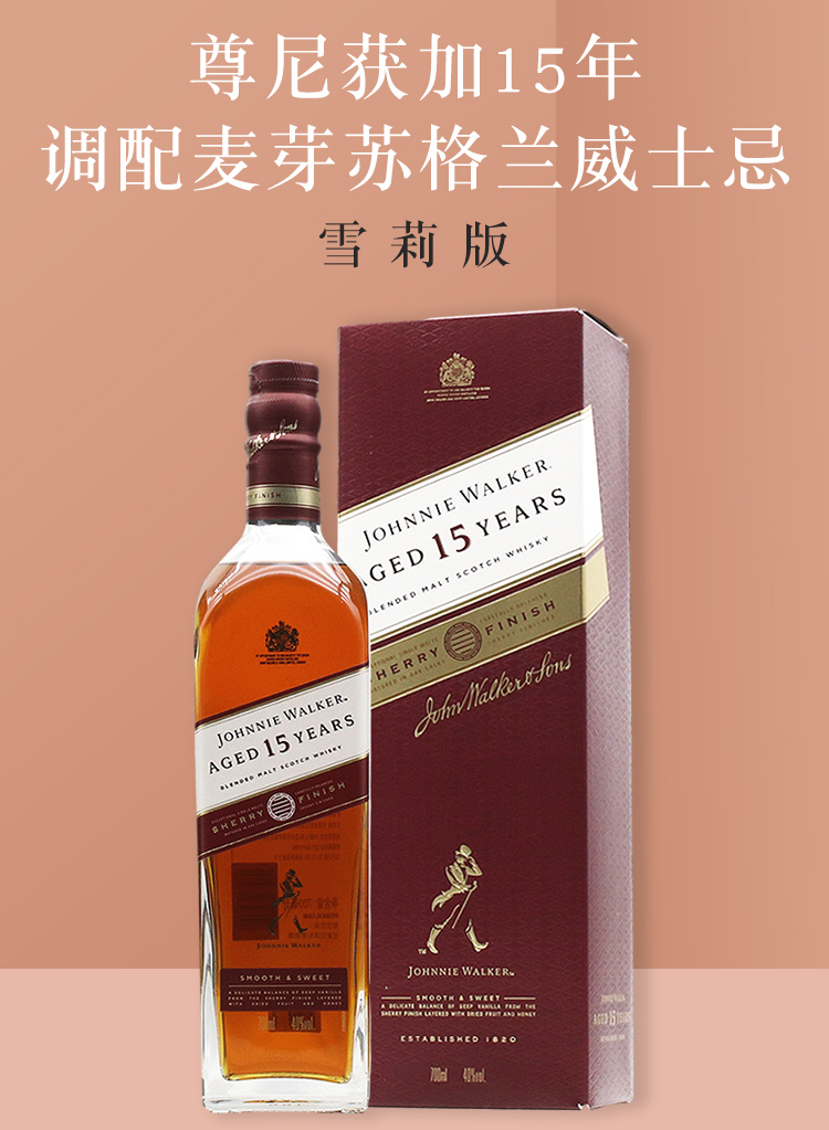 【行货】苏格兰尊尼获加 15年 调配威士忌雪莉版 700ml 40%vol