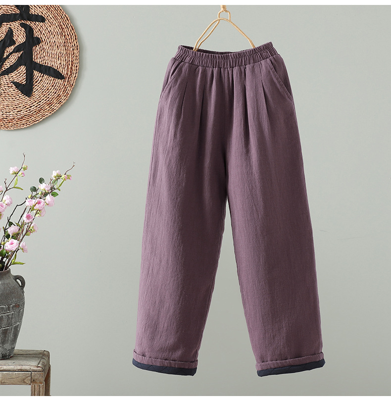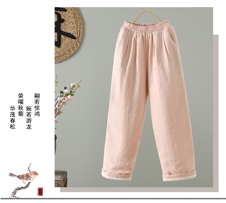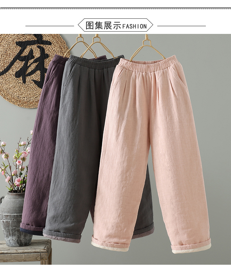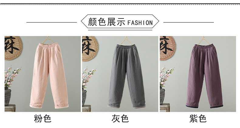 GYH 3802直筒休闲裤夹棉加厚保暖显瘦外穿棉裤纯色阔腿裤
