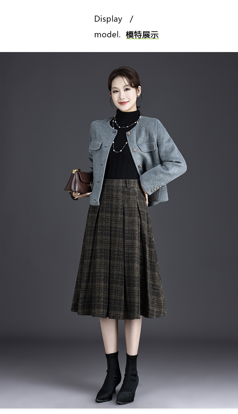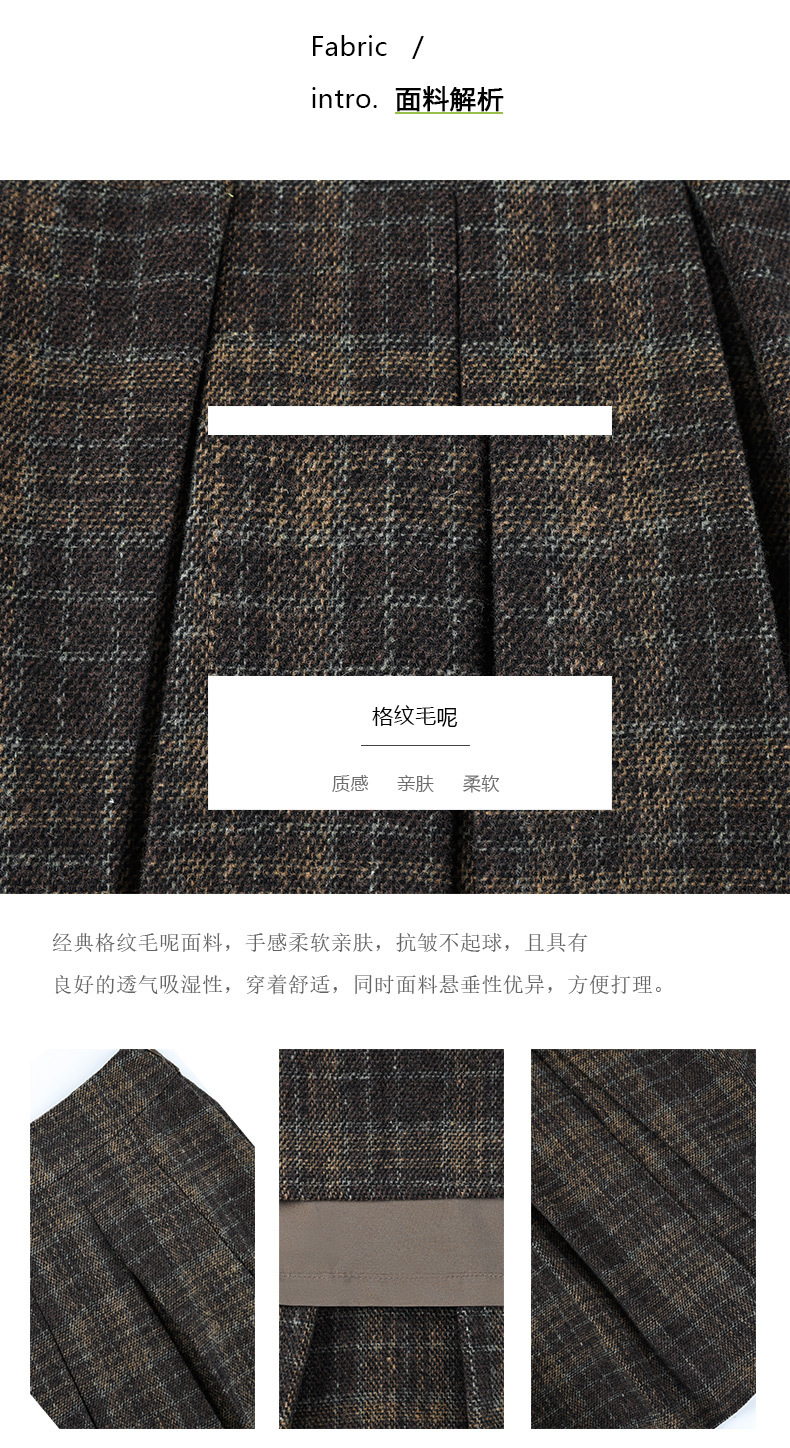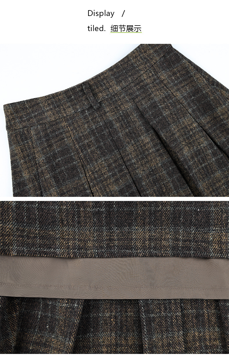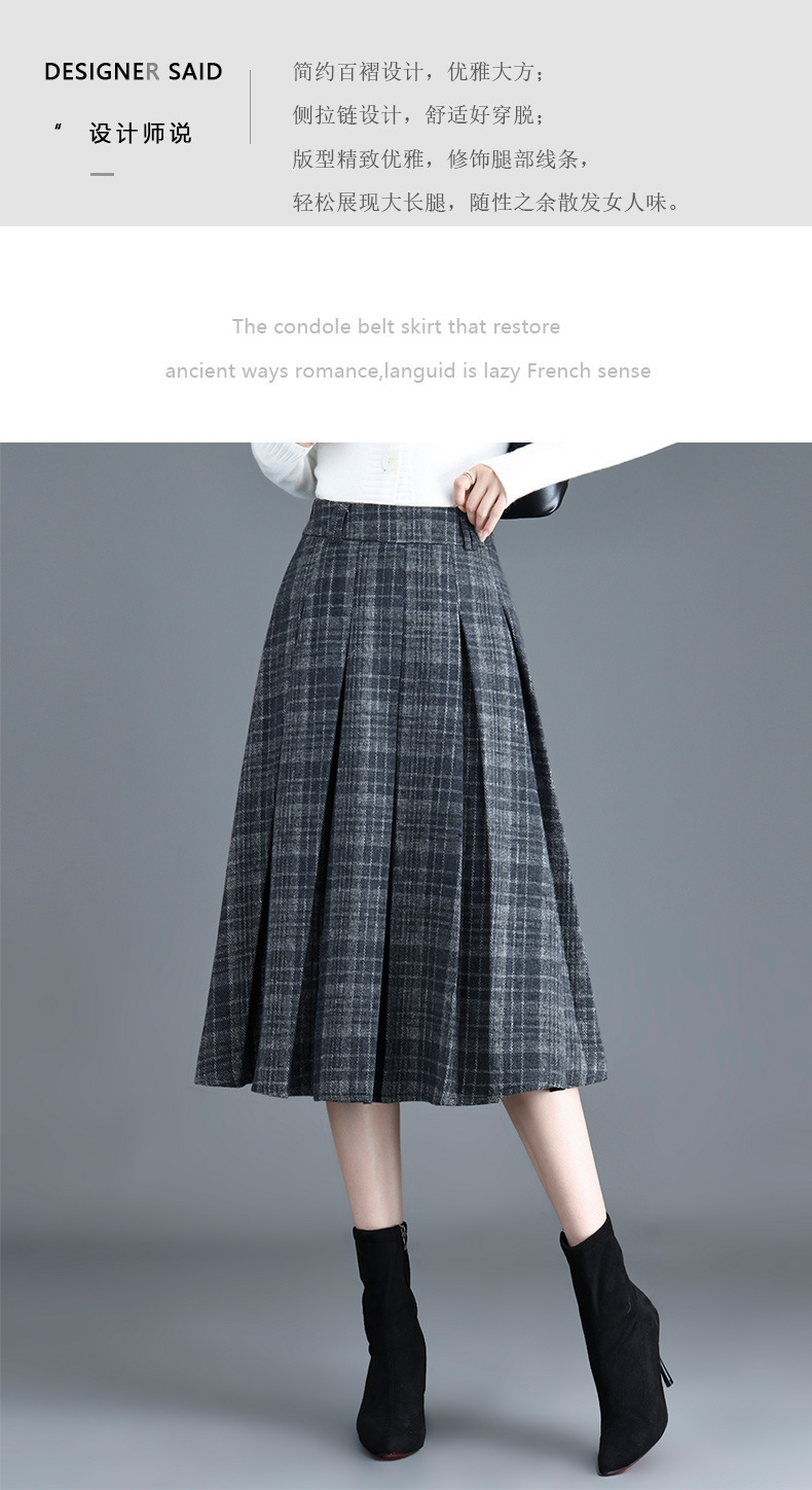 QYM 6988-Y毛呢半身裙高腰格纹百褶裙 商品图3