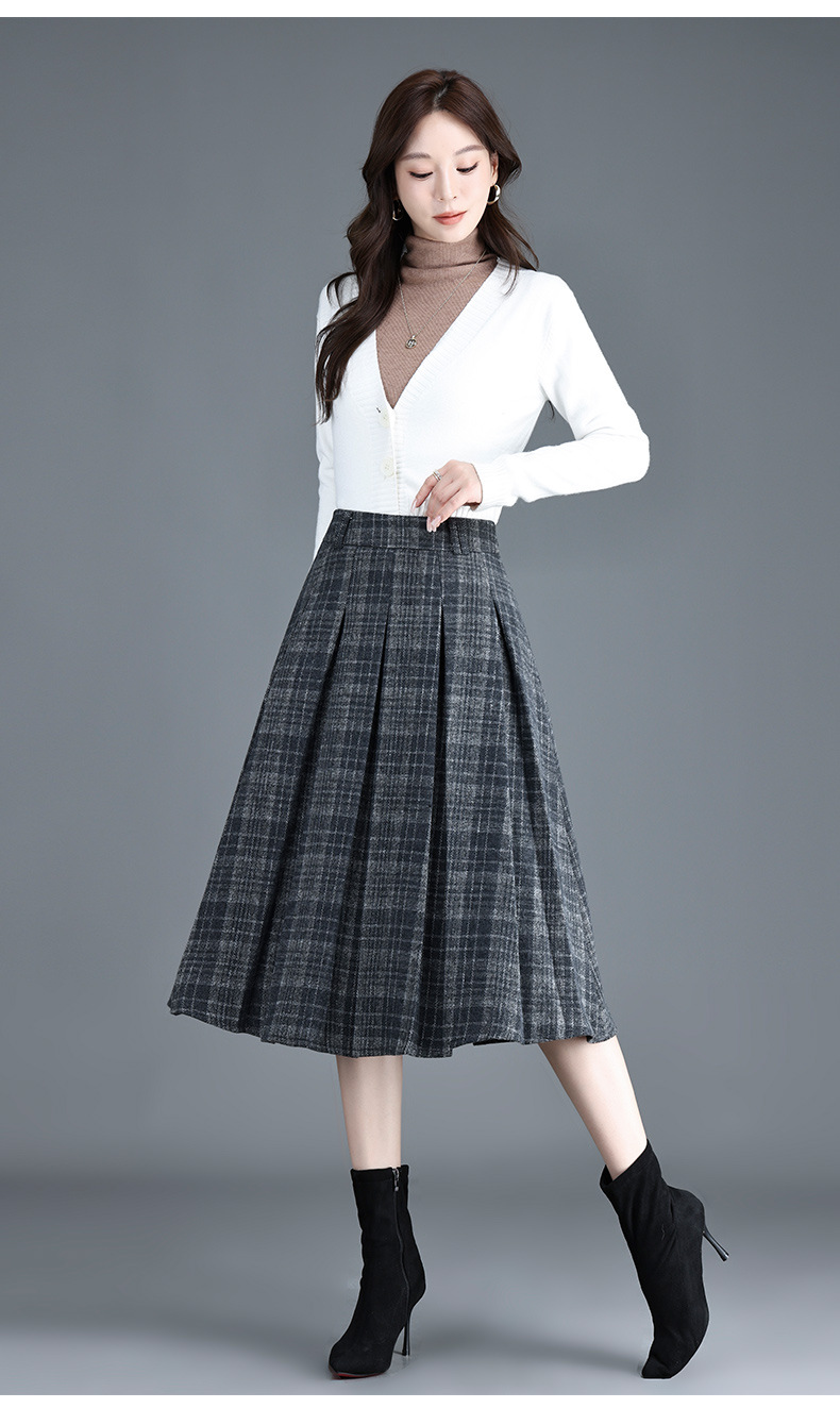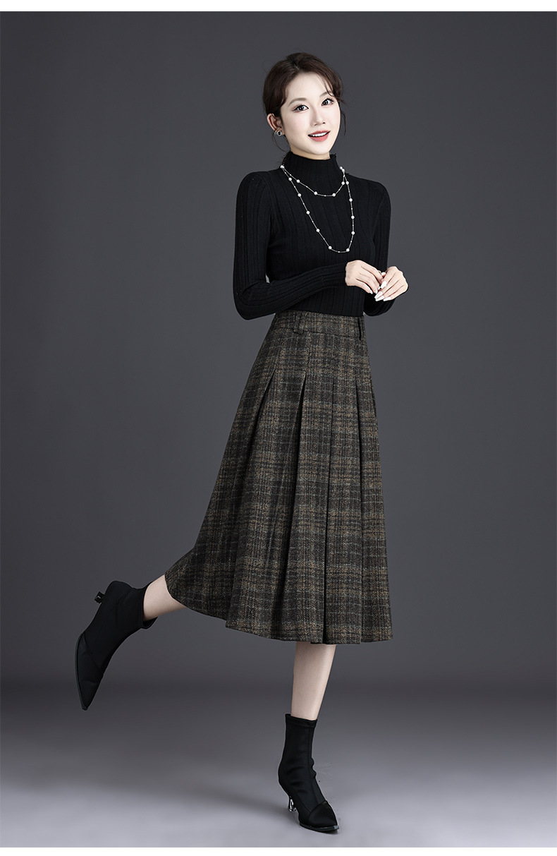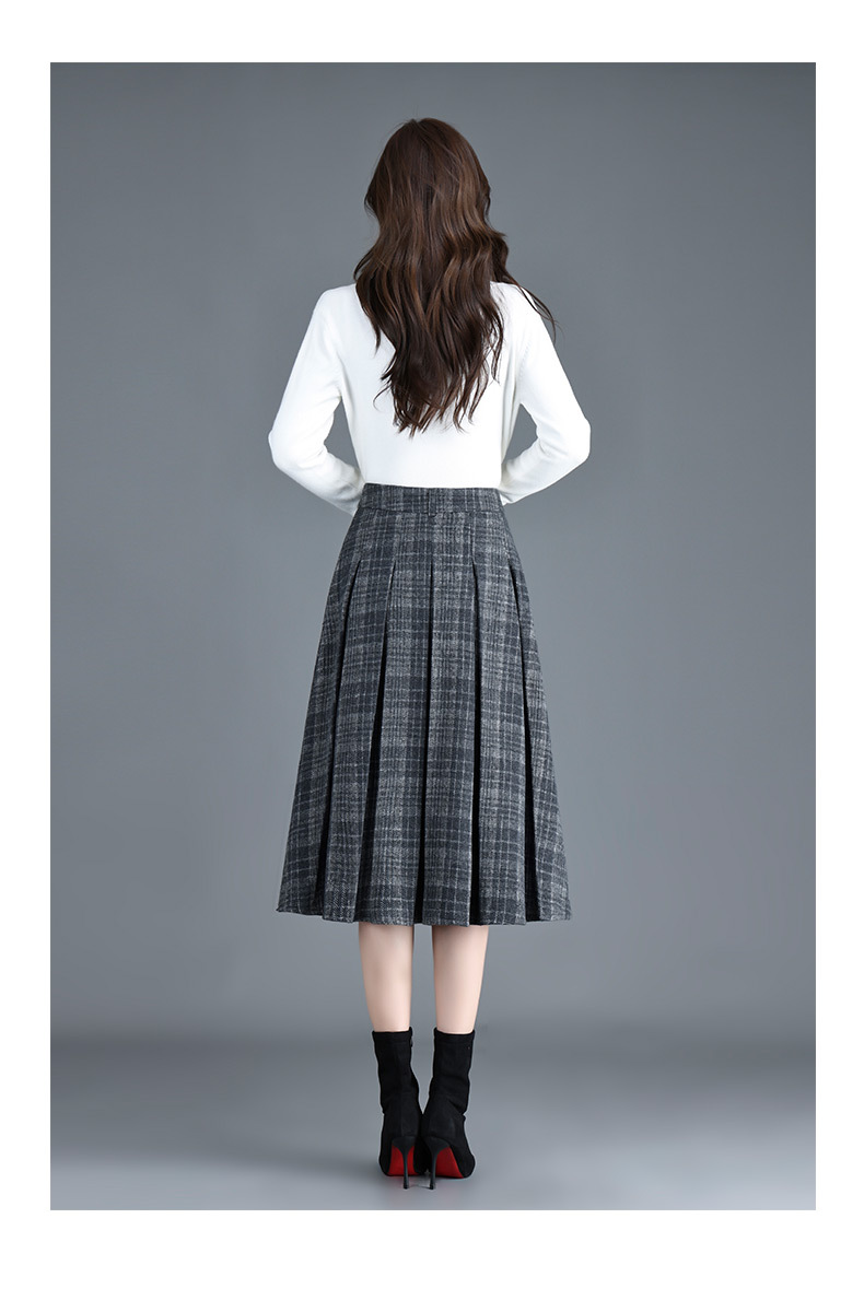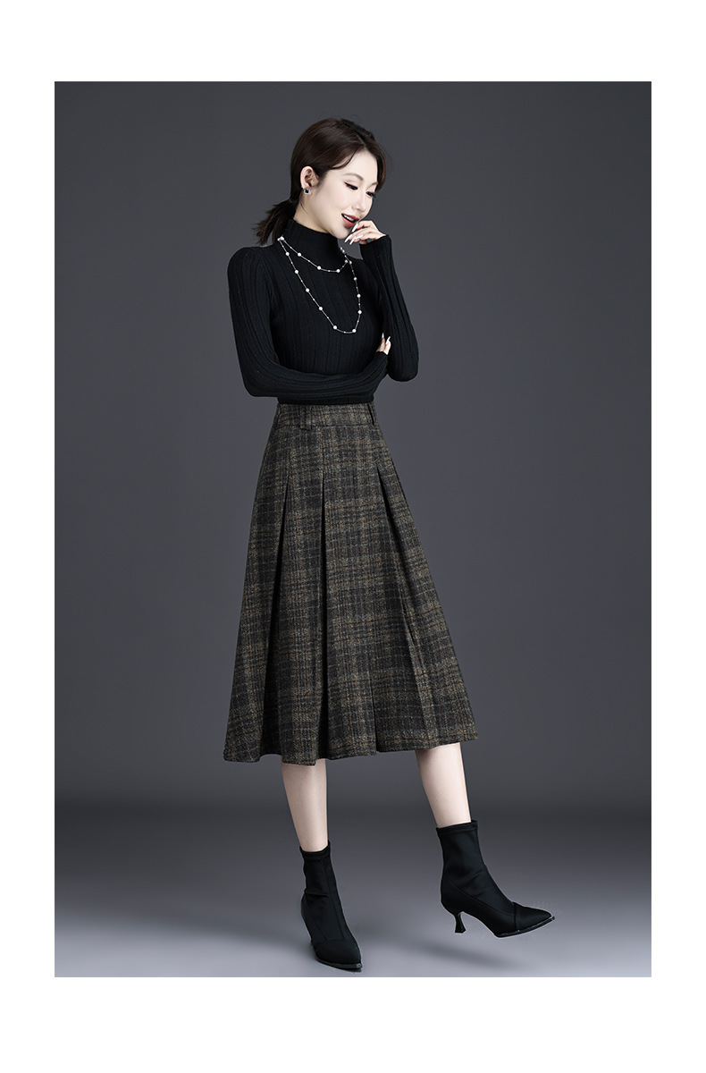 QYM 6988-Y毛呢半身裙高腰格纹百褶裙 商品图4