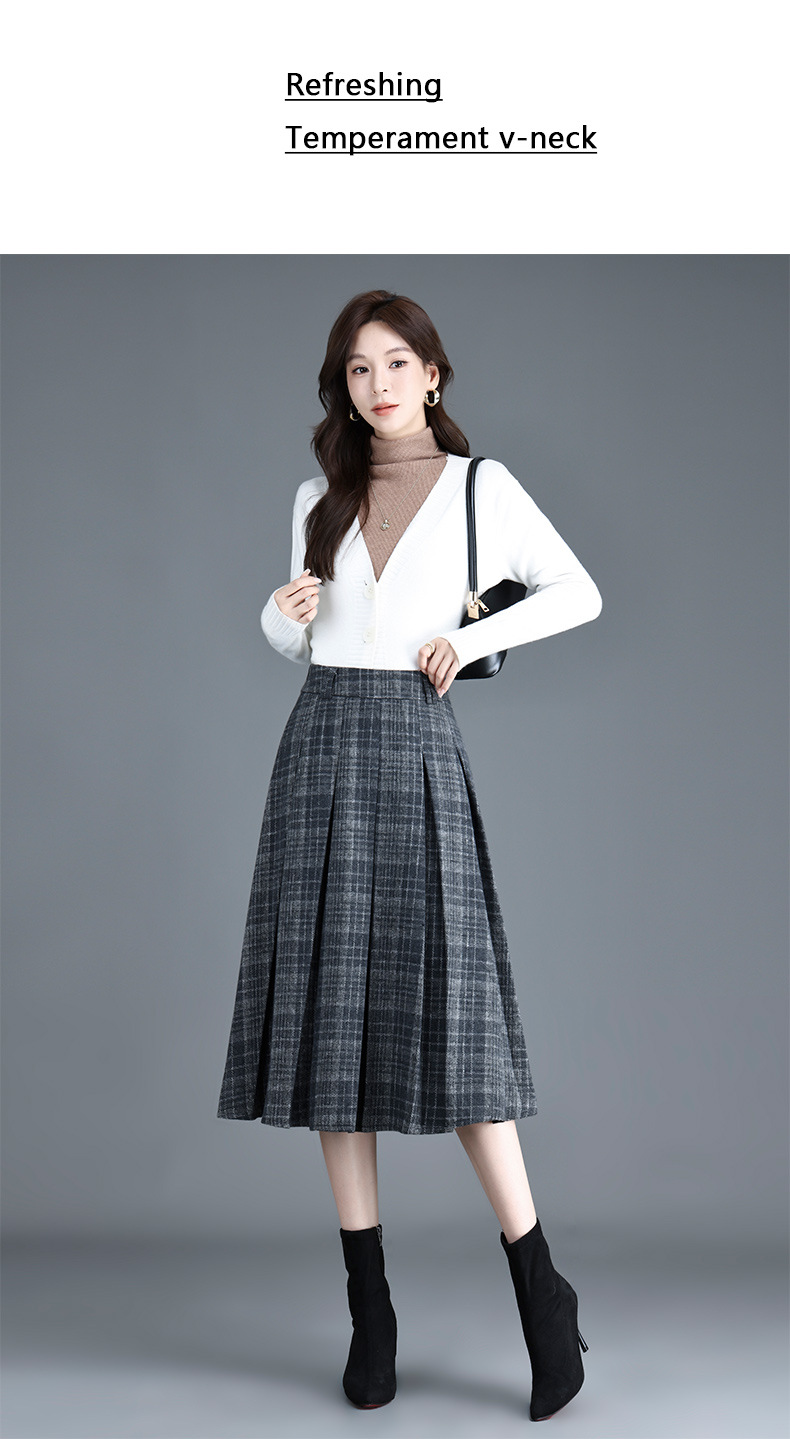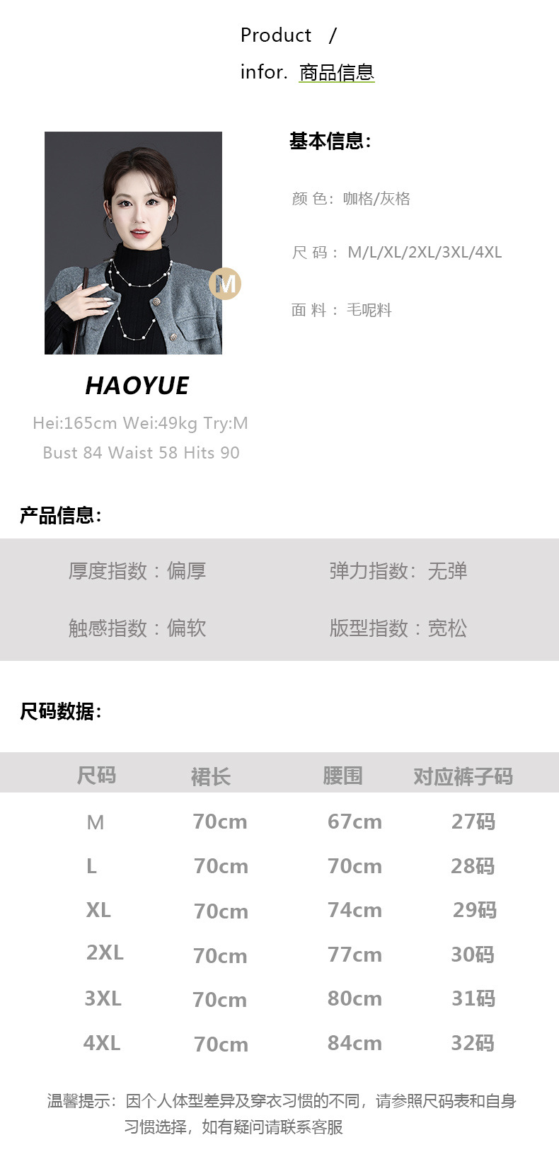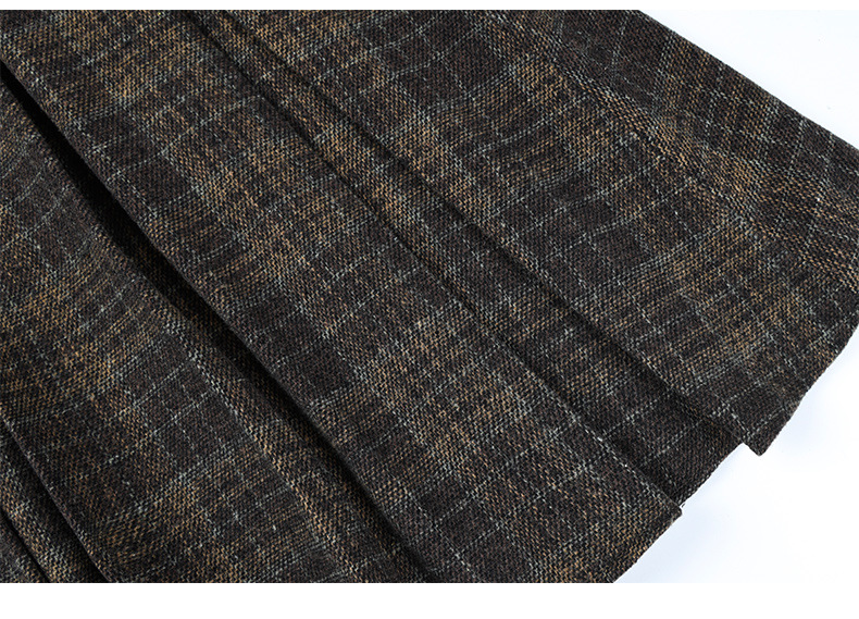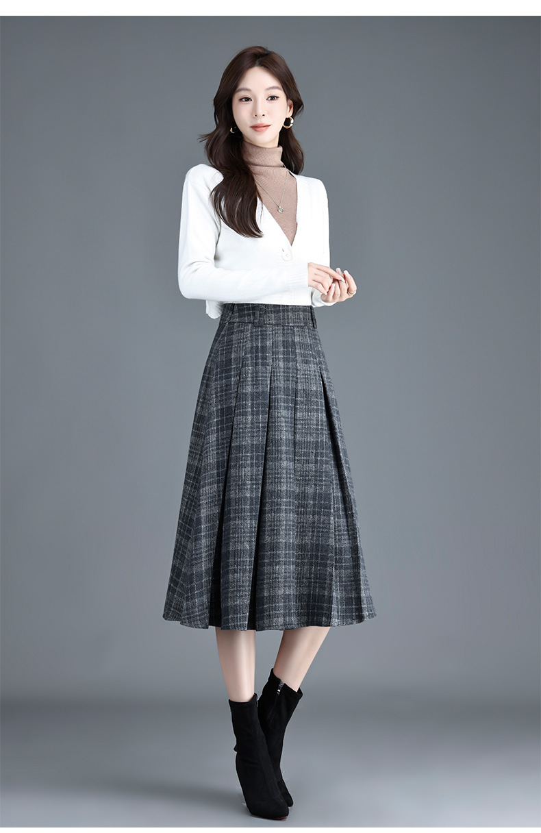 QYM 6988-Y毛呢半身裙高腰格纹百褶裙 商品图4