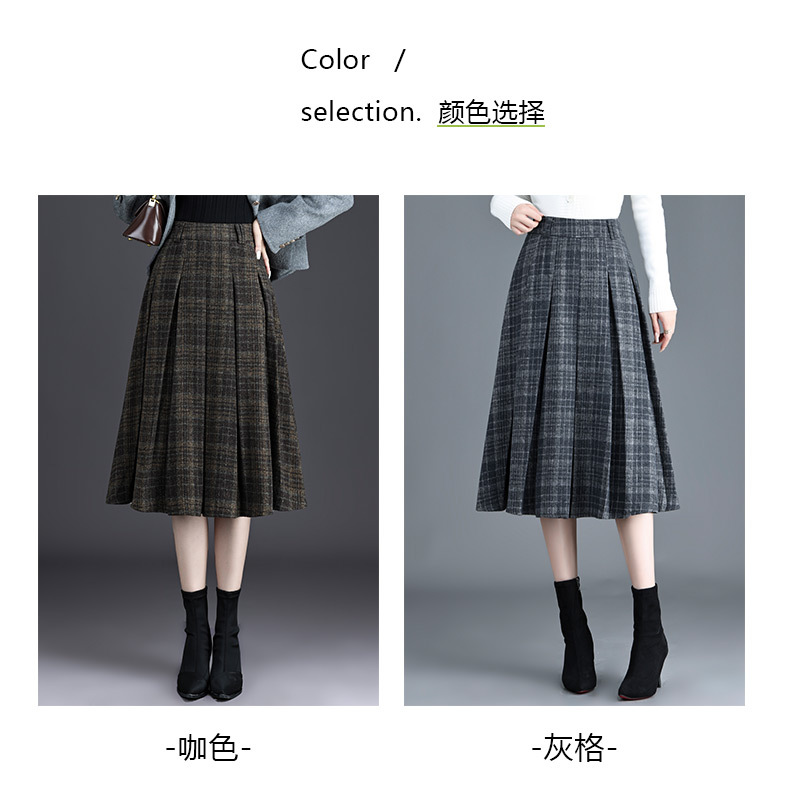 QYM 6988-Y毛呢半身裙高腰格纹百褶裙 商品图1