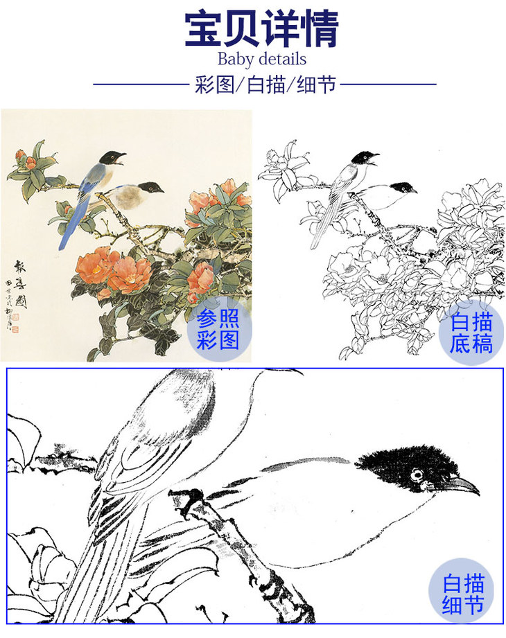 田世光工笔花鸟白描底稿-《报春图》斗方小品册页-多种白描尺寸可选-SG02