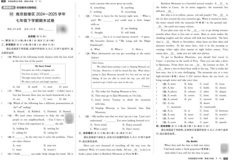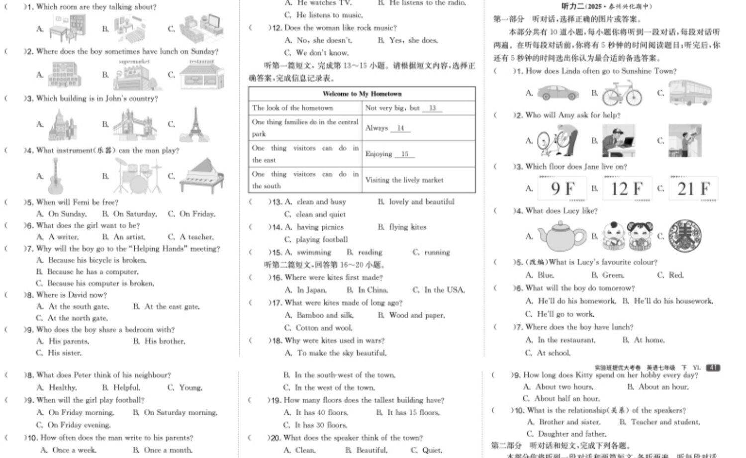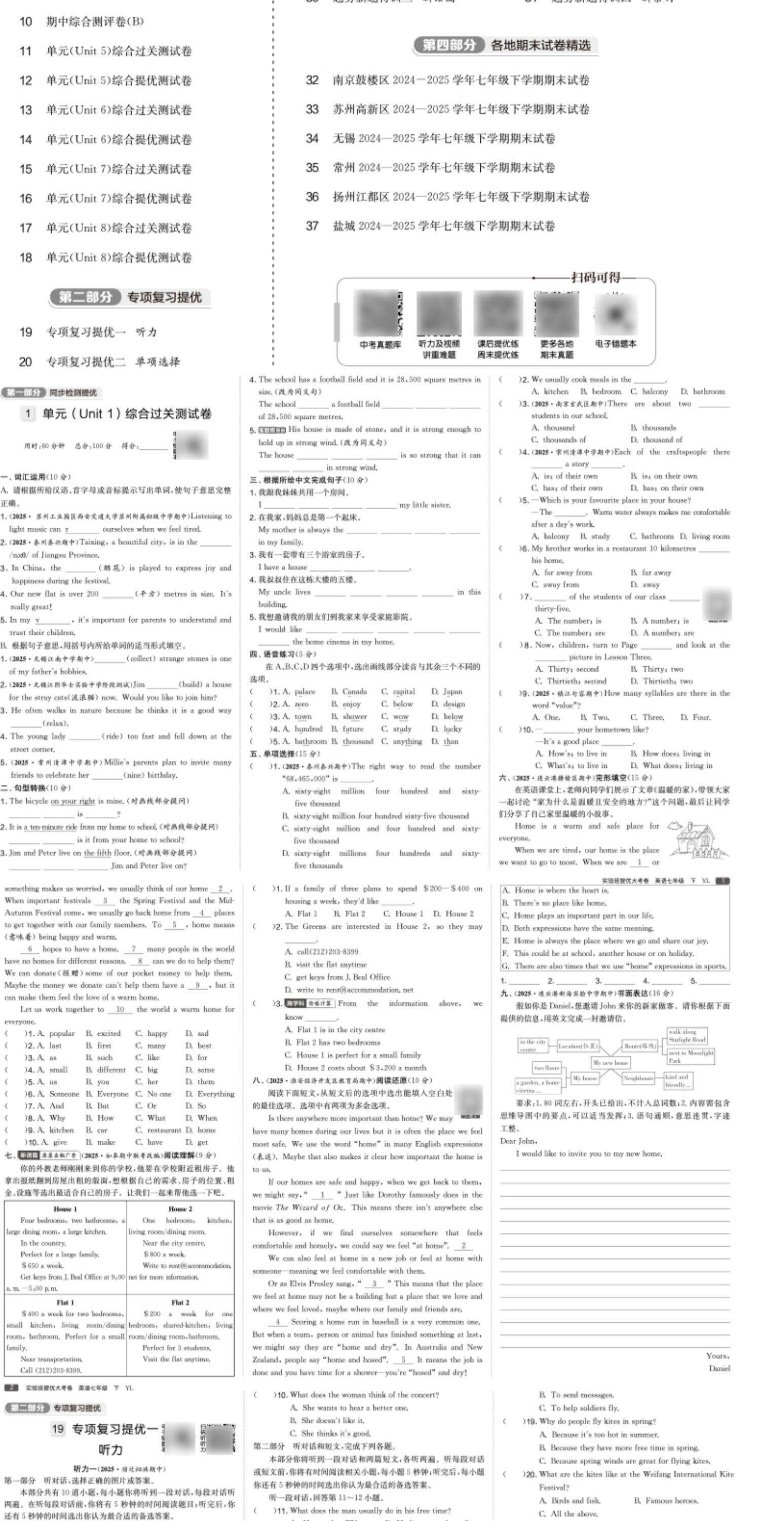 2026版实验班提优大考卷下册七八九年级同步训练单元卷期中期末达标提优真题复习