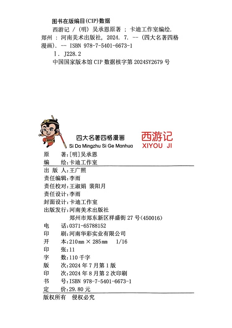新版卡迪少儿大开本漫画书中国古典四大名著三国演义水浒传红楼梦西游记正版四格漫画全套儿童读物有声注音