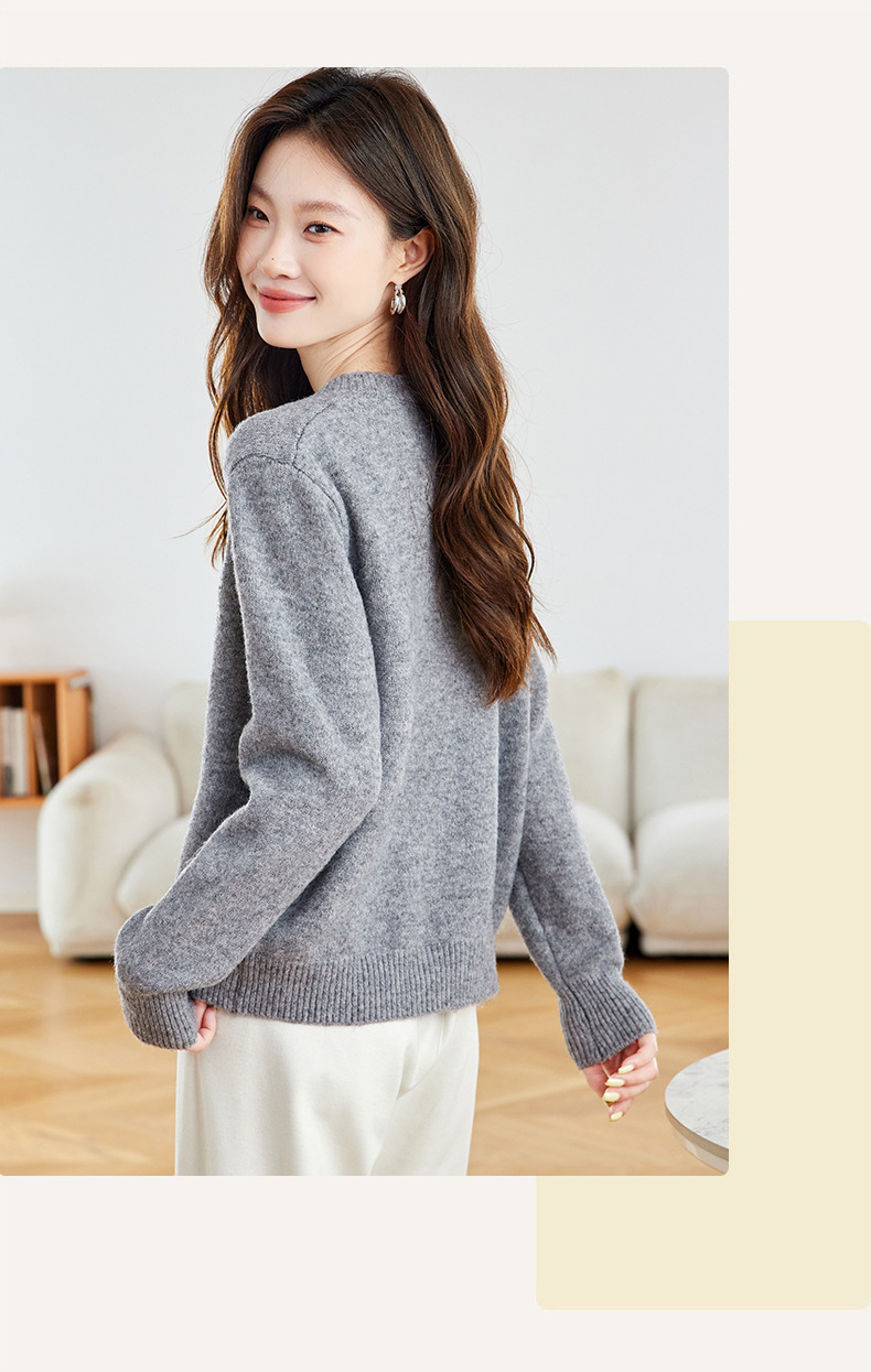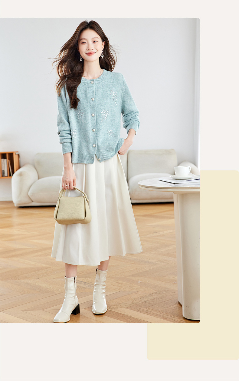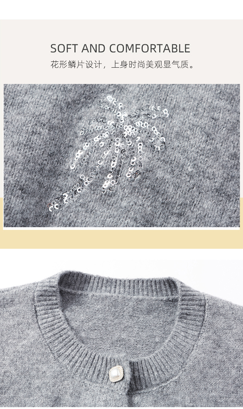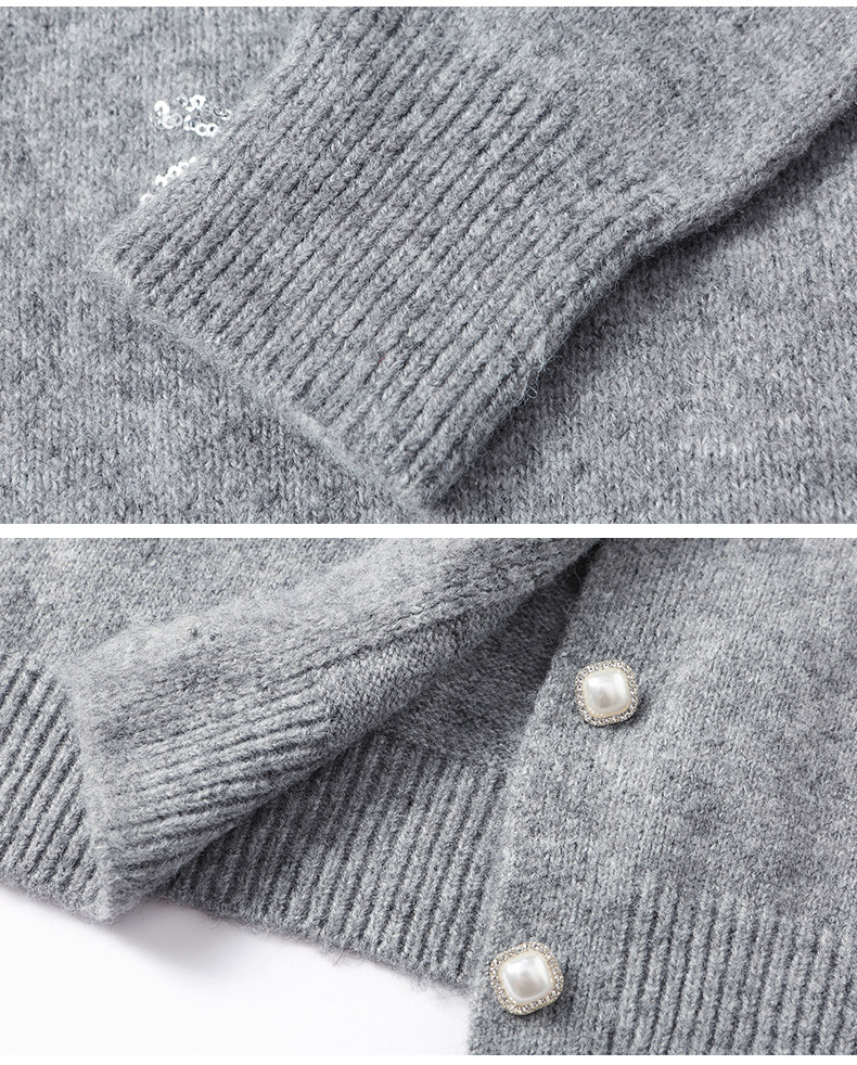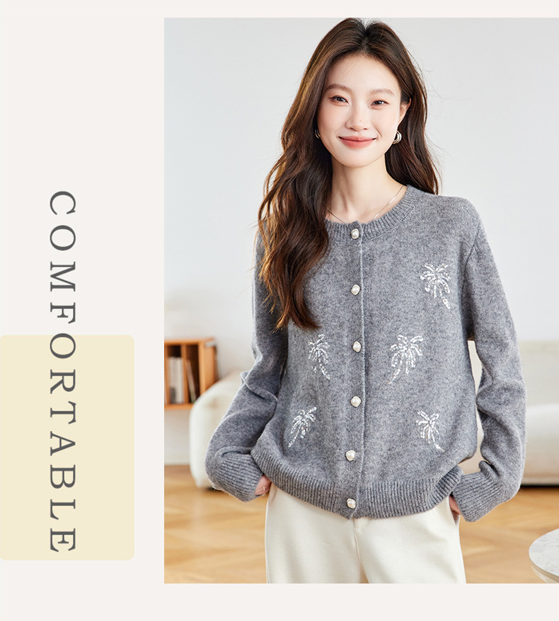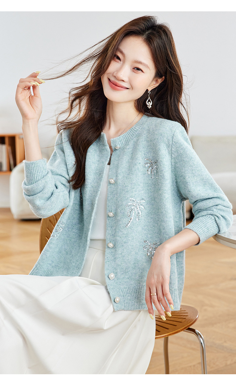 CC2025春秋新款圆领针织开衫女宽松刺绣钉珠毛衣外套上衣薄早秋外搭