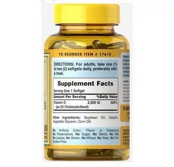 Puritan's Pride/普丽普莱 vitamin D3促补钙吸收 2000iu 200粒,美国代购,无中文标签,介意慎拍