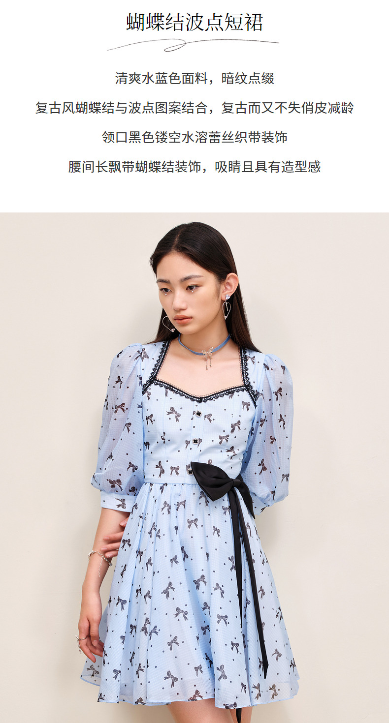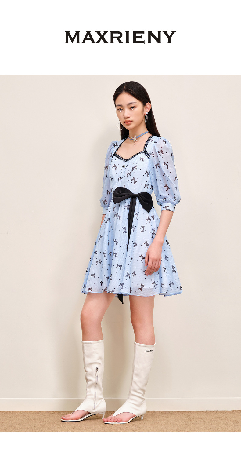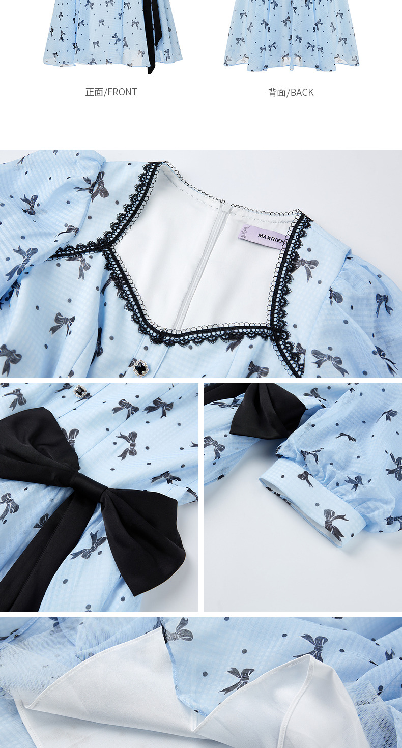 MAXRIENY复古蝴蝶结飘带波点连衣裙甜美少女感(货号:MS88DR538)
