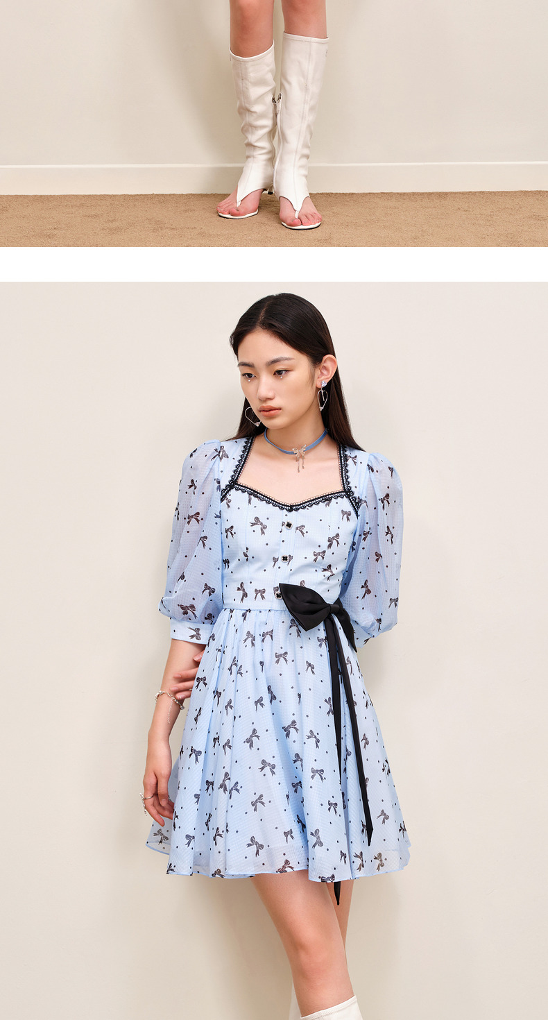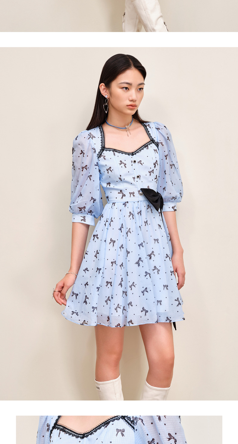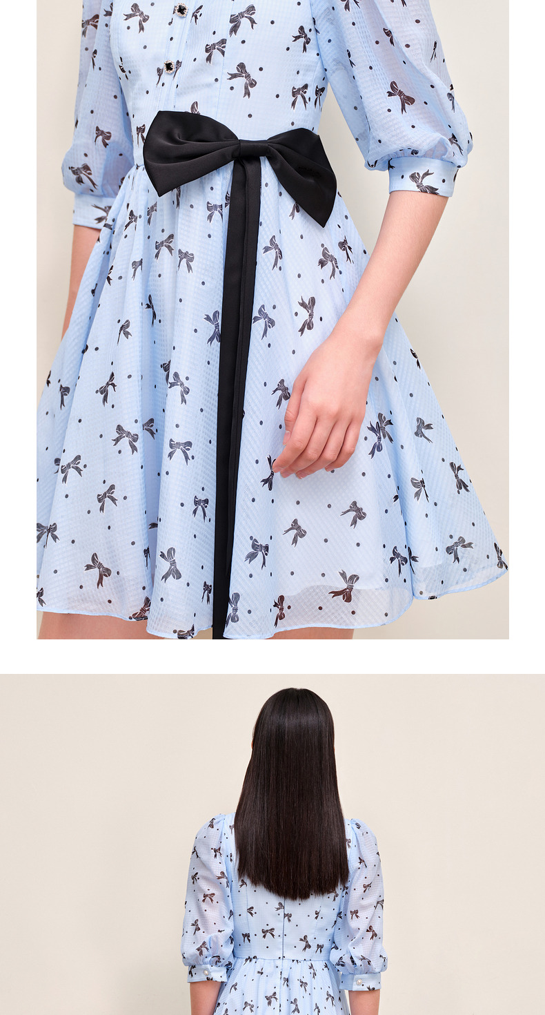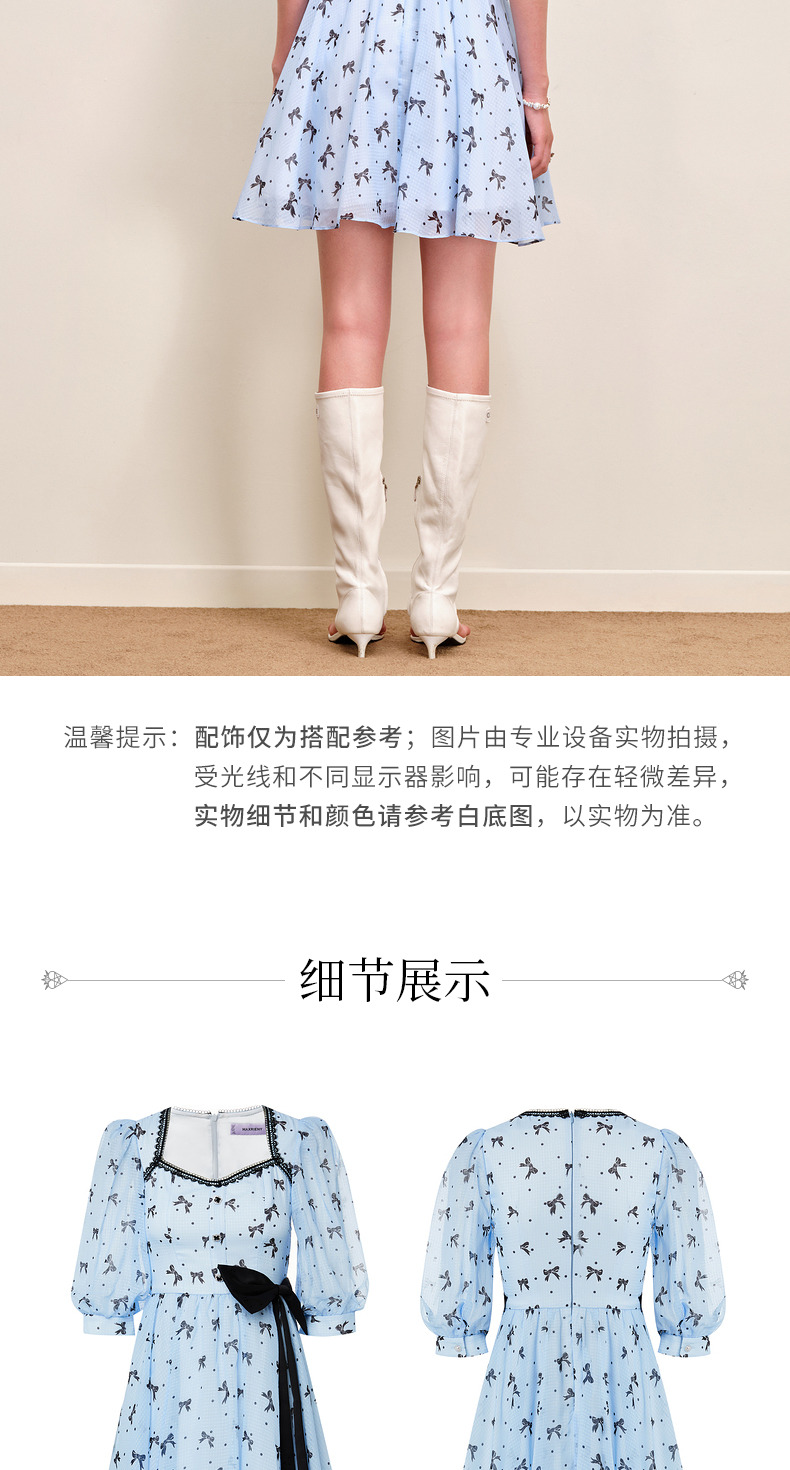 MAXRIENY复古蝴蝶结飘带波点连衣裙甜美少女感(货号:MS88DR538)