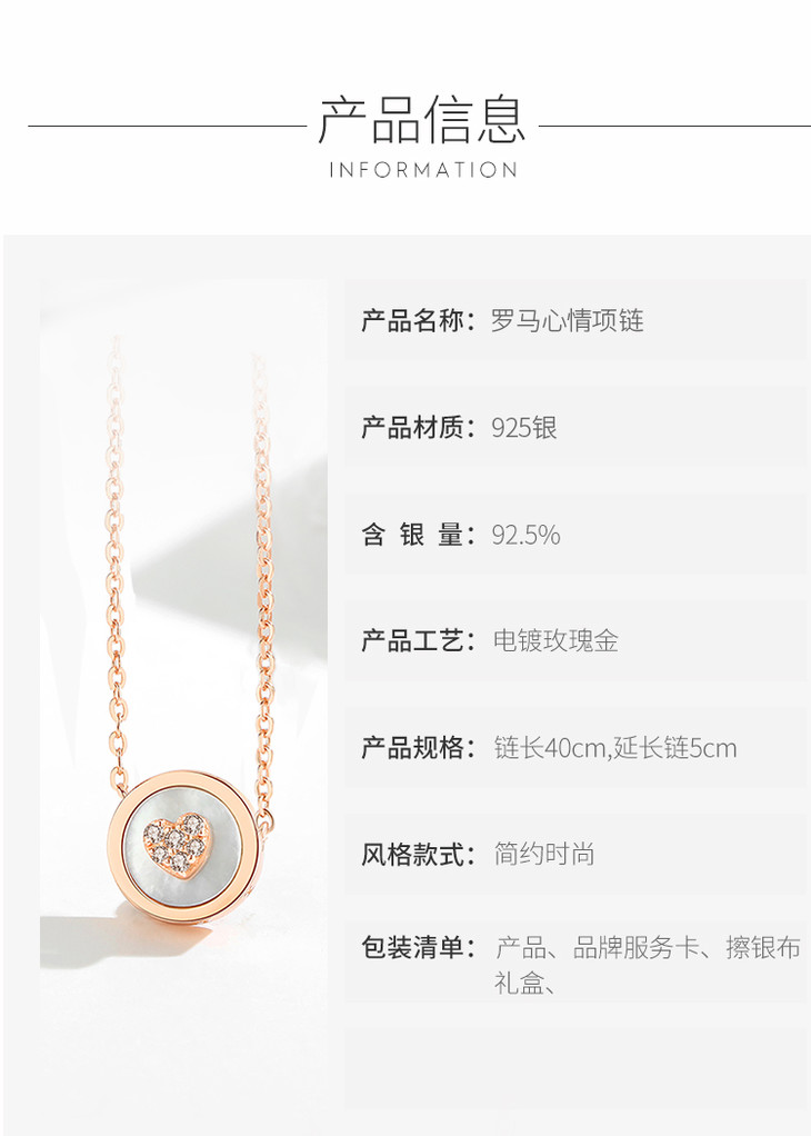 Winy925纯银罗马心情项链送女友闺蜜节日生日礼物