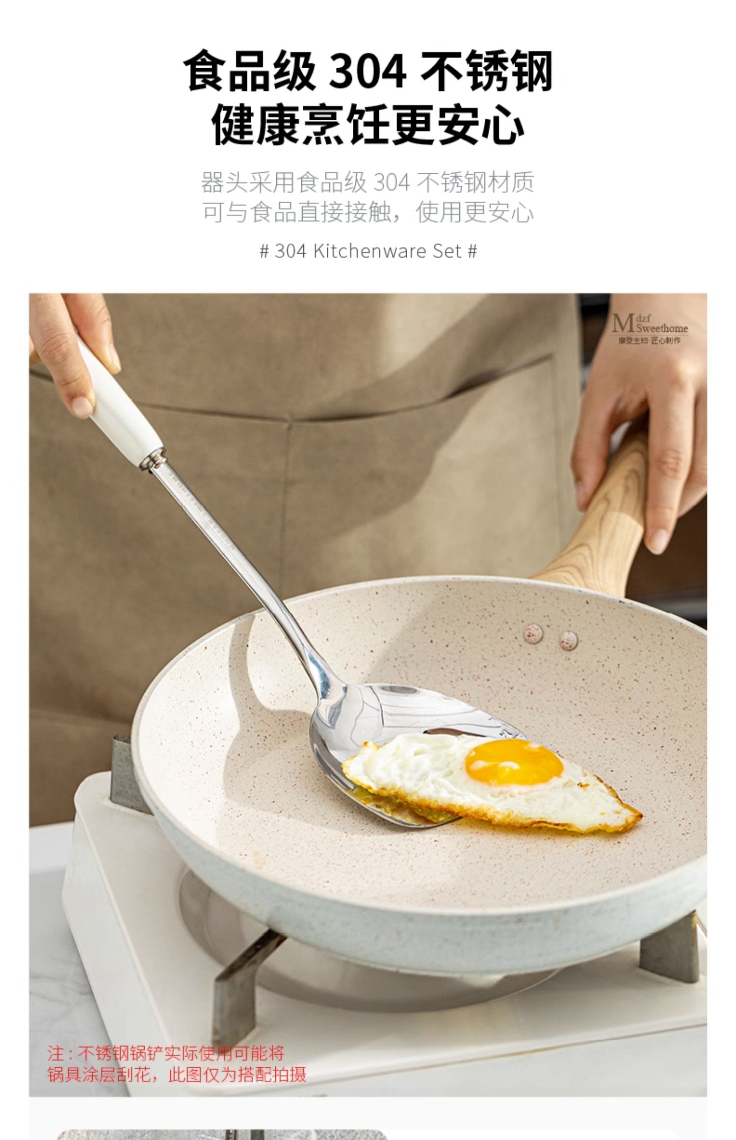 摩登主妇锅铲家用汤勺食品级漏勺炒勺炒菜铲子304不锈钢厨具套装