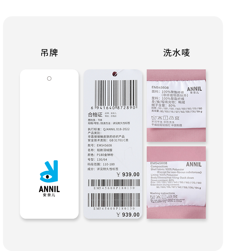 男女童短款羽绒服冬季新款安奈儿童装EM545608