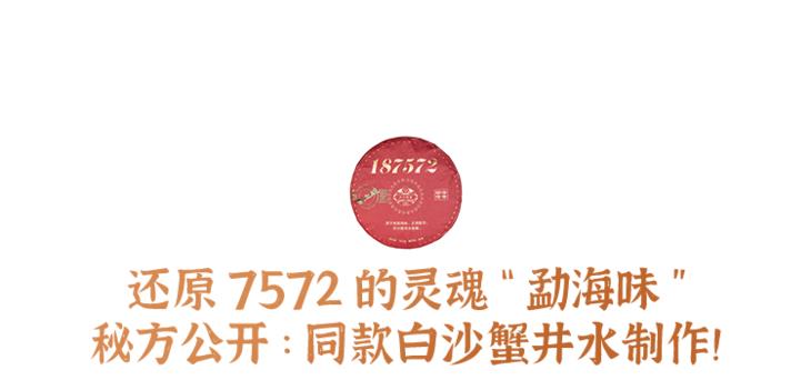 在原配方的基础上,加入了珍稀老树原料。特别采用当年同款的白沙蟹井水,想尽办法还原那口独特的“勐海味”!