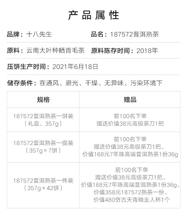前100名下单,赠送价值38元高级茶刀1把、价值168元7年陈高端普洱熟茶1份36g