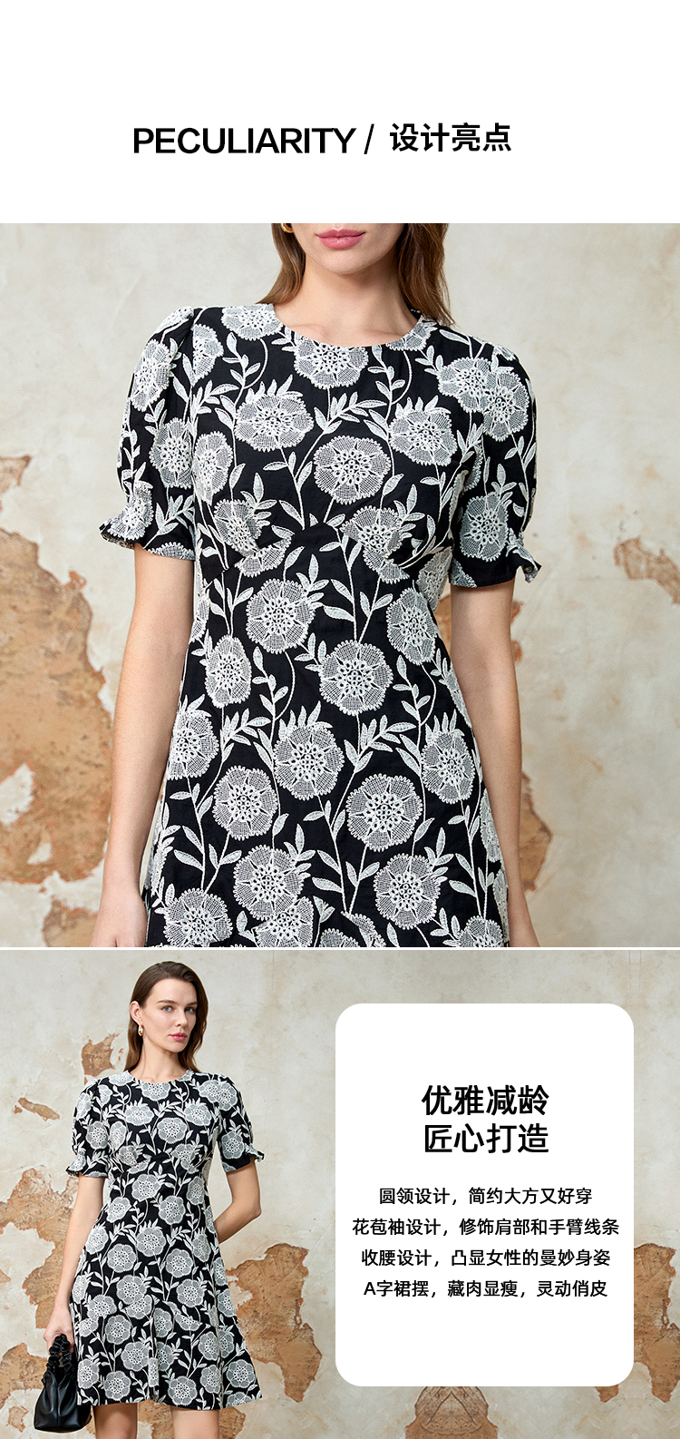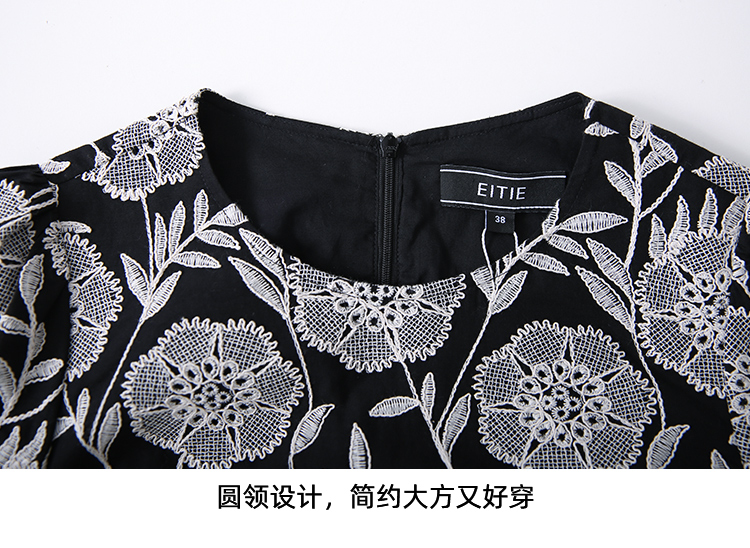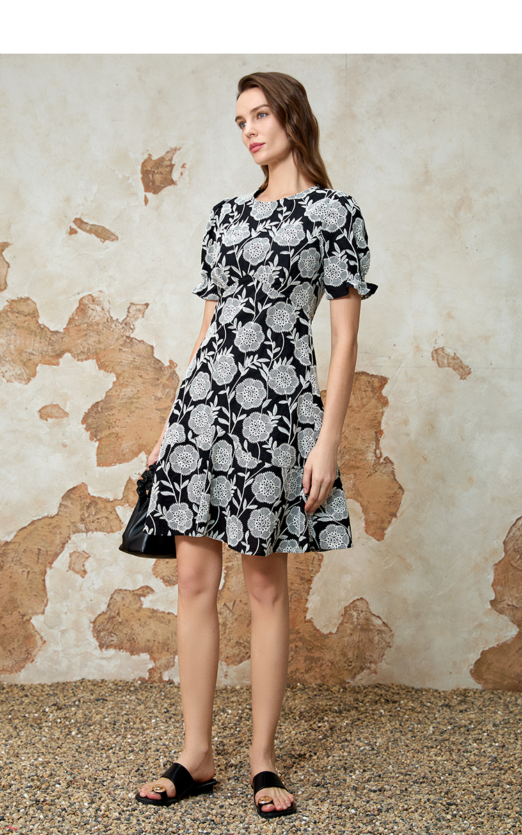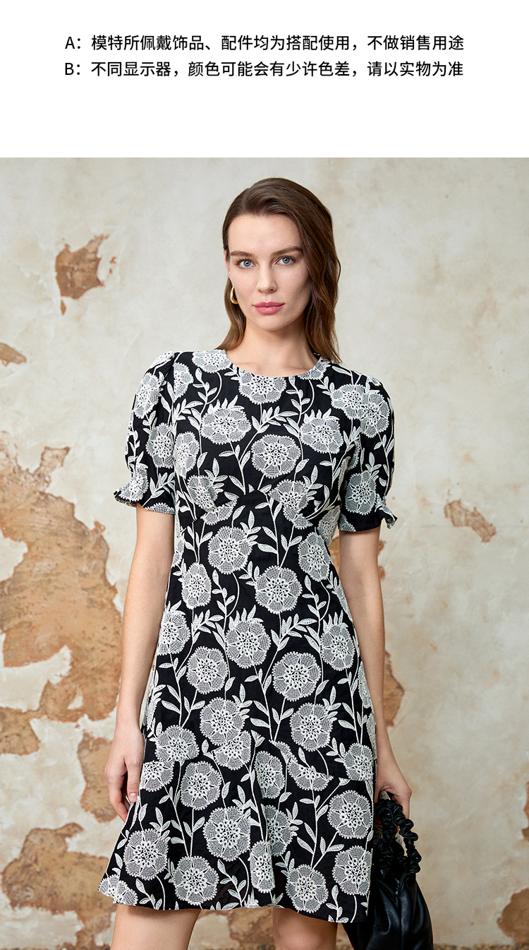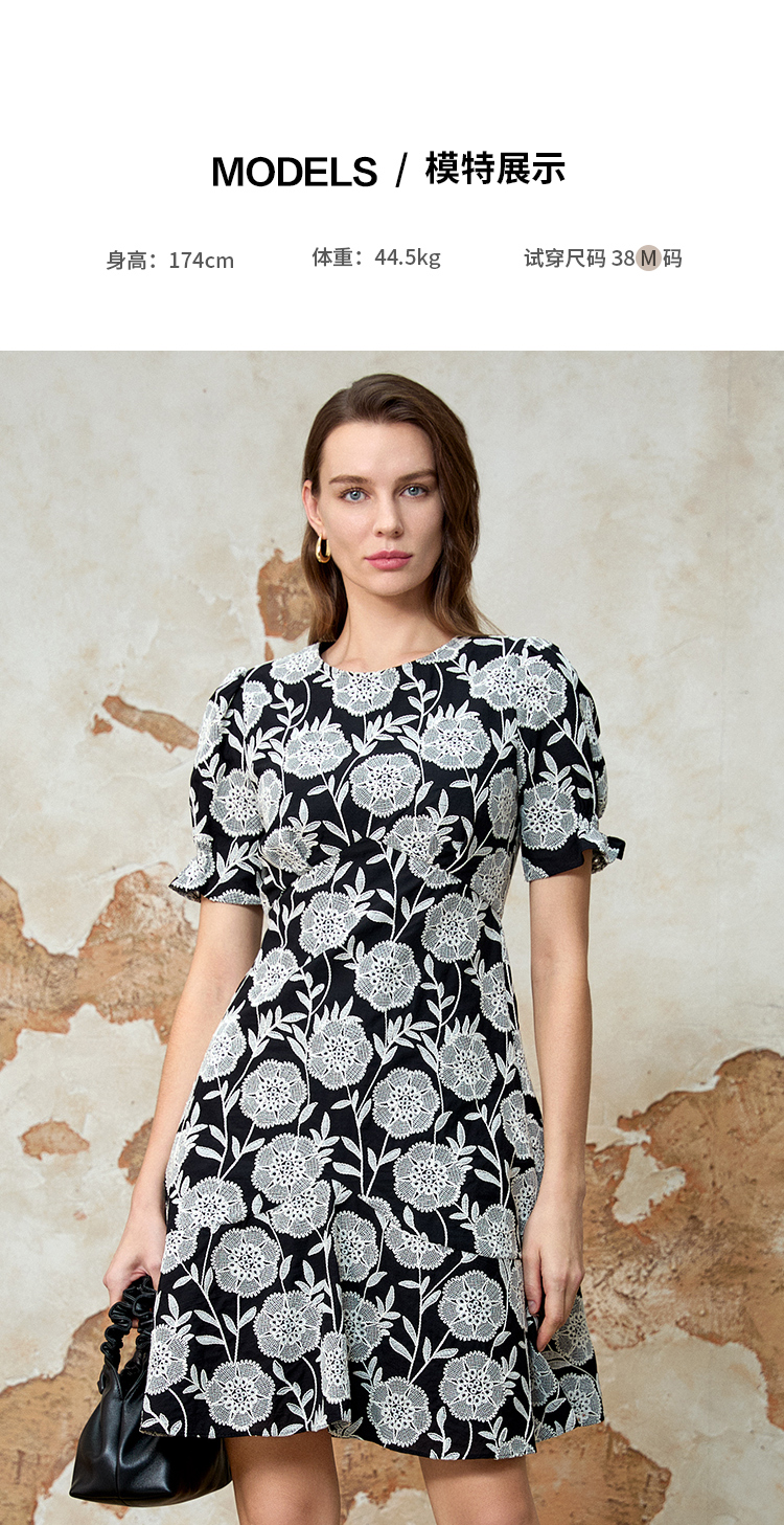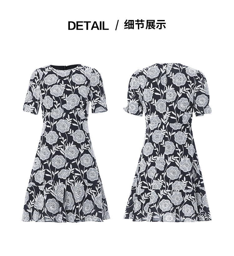 EITIE爱特爱气质高级感圆领收腰短裙浪漫印花连衣裙夏季新款8207953