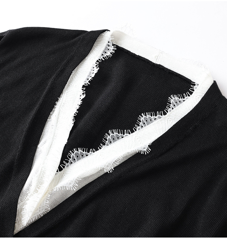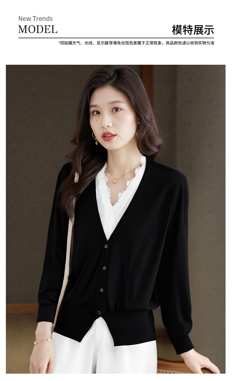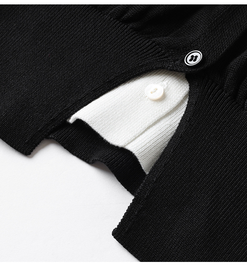 丁摩新款撞色拼接v领针织开衫女小香风气质减龄显瘦上衣5ZF-00378 商品图4