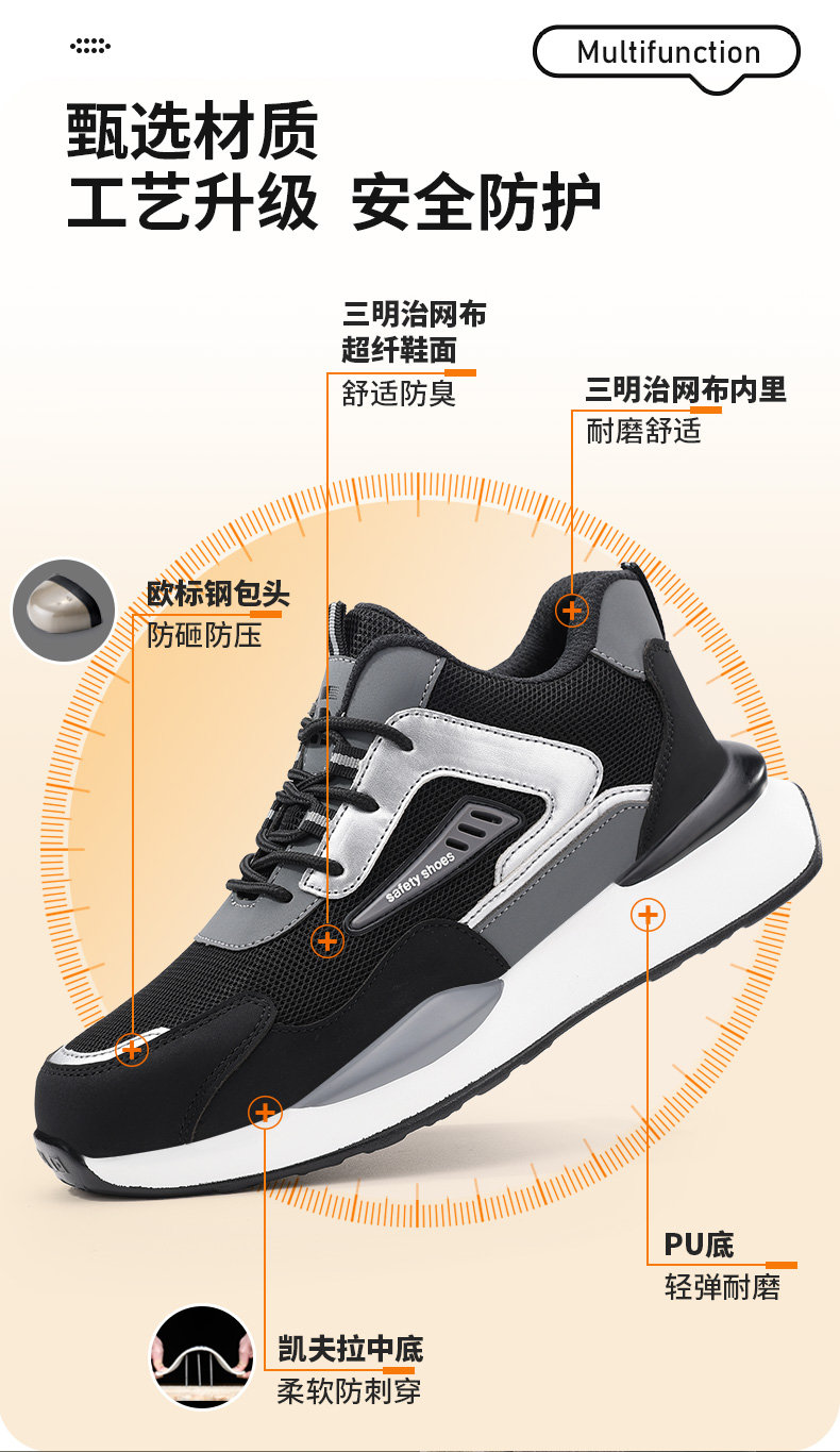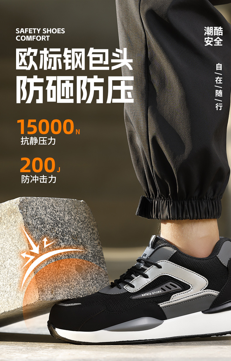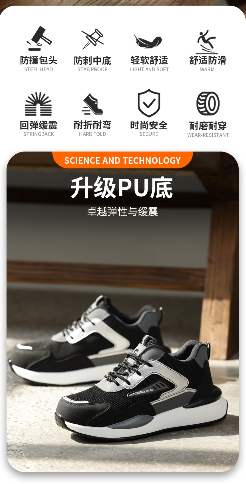 男防砸防刺工作鞋钢包头超轻PU大底LA认证专业防护安全功能鞋舒适轻便透气四季款