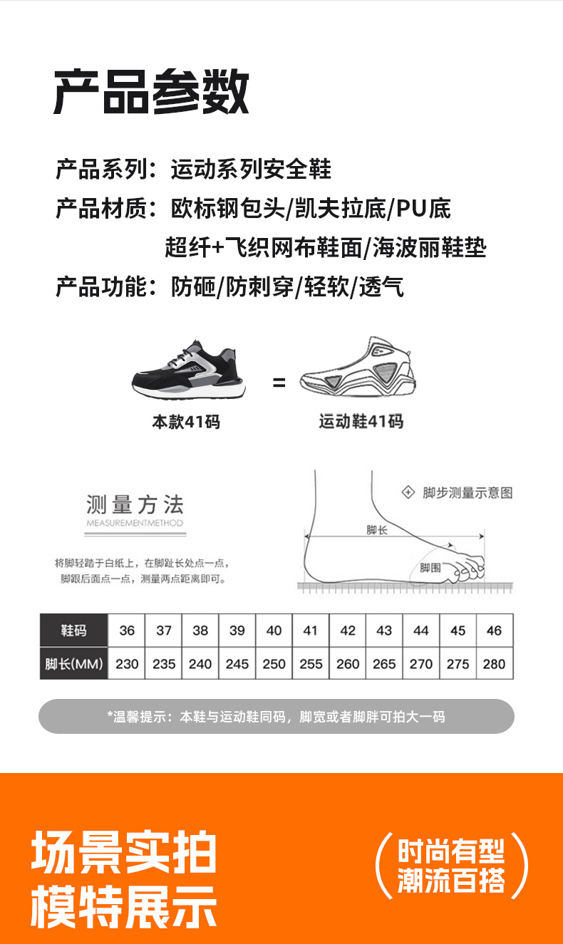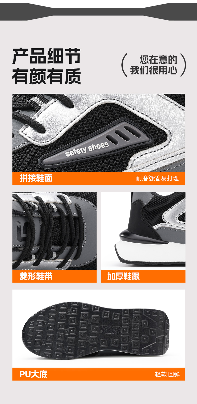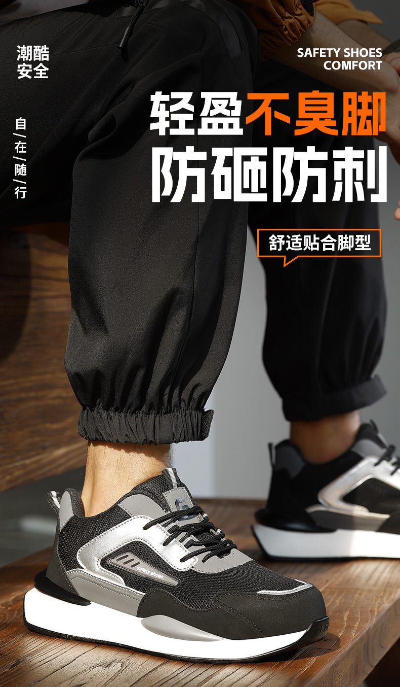 男防砸防刺工作鞋钢包头超轻PU大底LA认证专业防护安全功能鞋舒适轻便透气四季款
