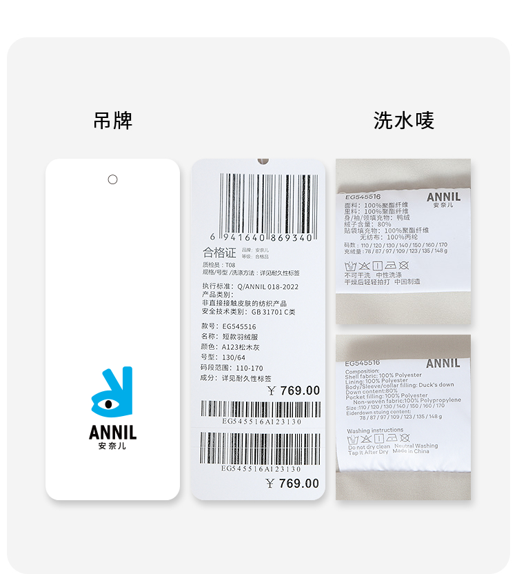 【科技防寒/短款羽绒服】女童短款羽绒服冬季新款安奈儿童装EG545516