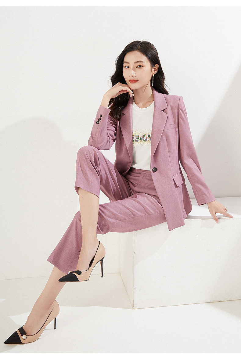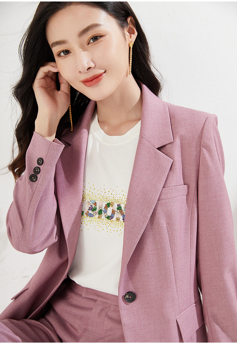 乔万尼早新款西装外套韩系粉色一粒扣EI3B245