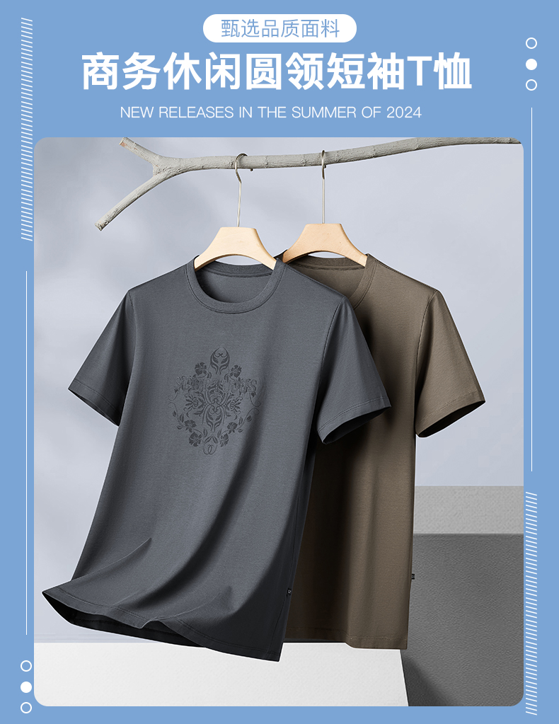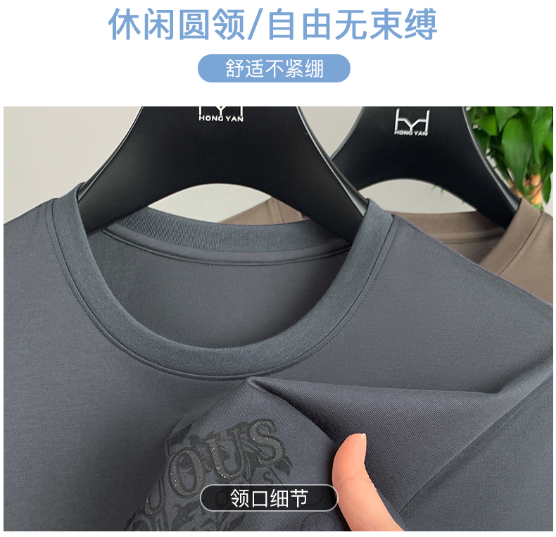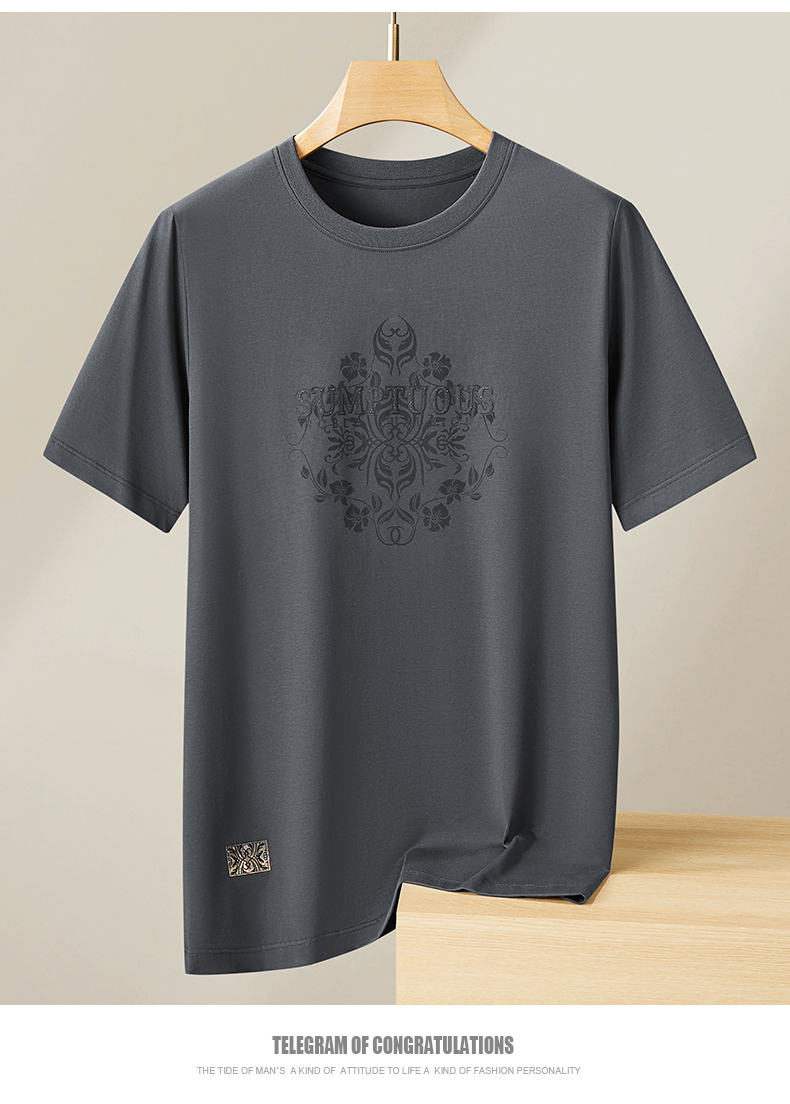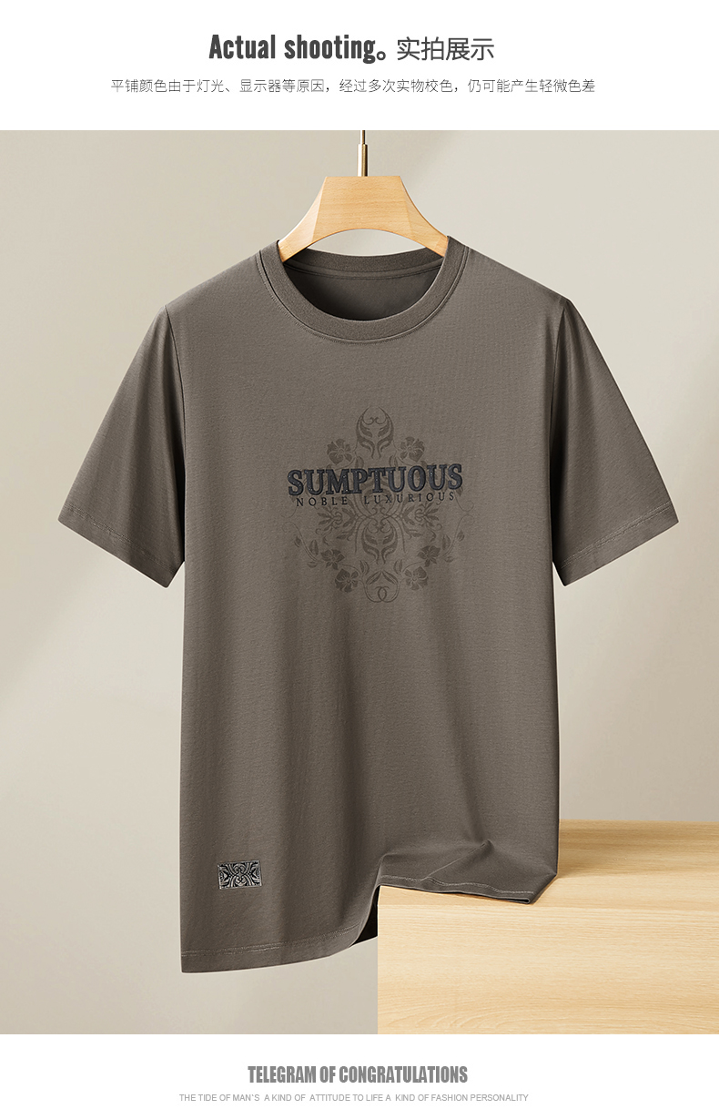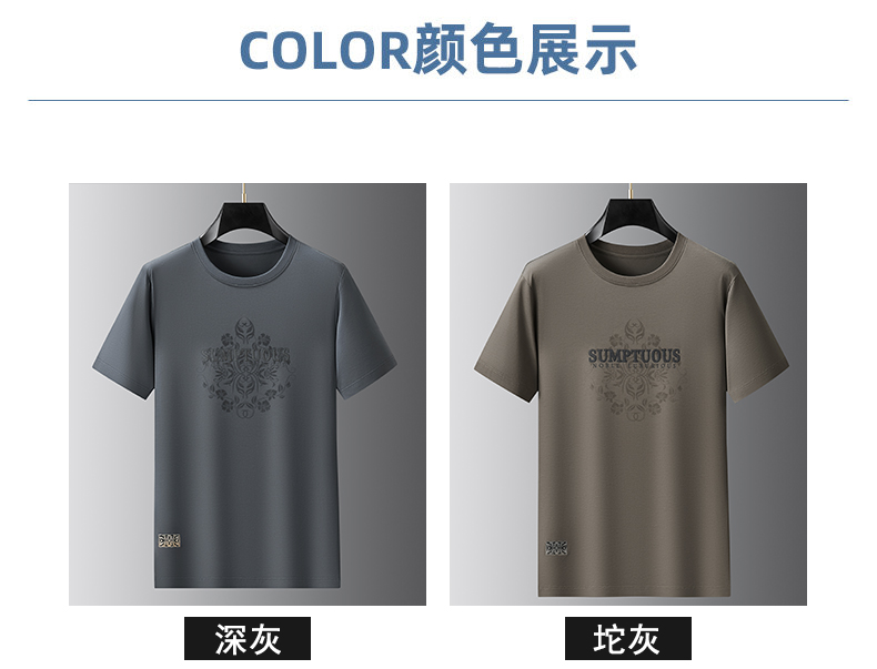 【丝光棉】【新款DPF】大依优型大码短袖T恤圆领加肥加大男装大号大码上衣男士休闲半袖夏季