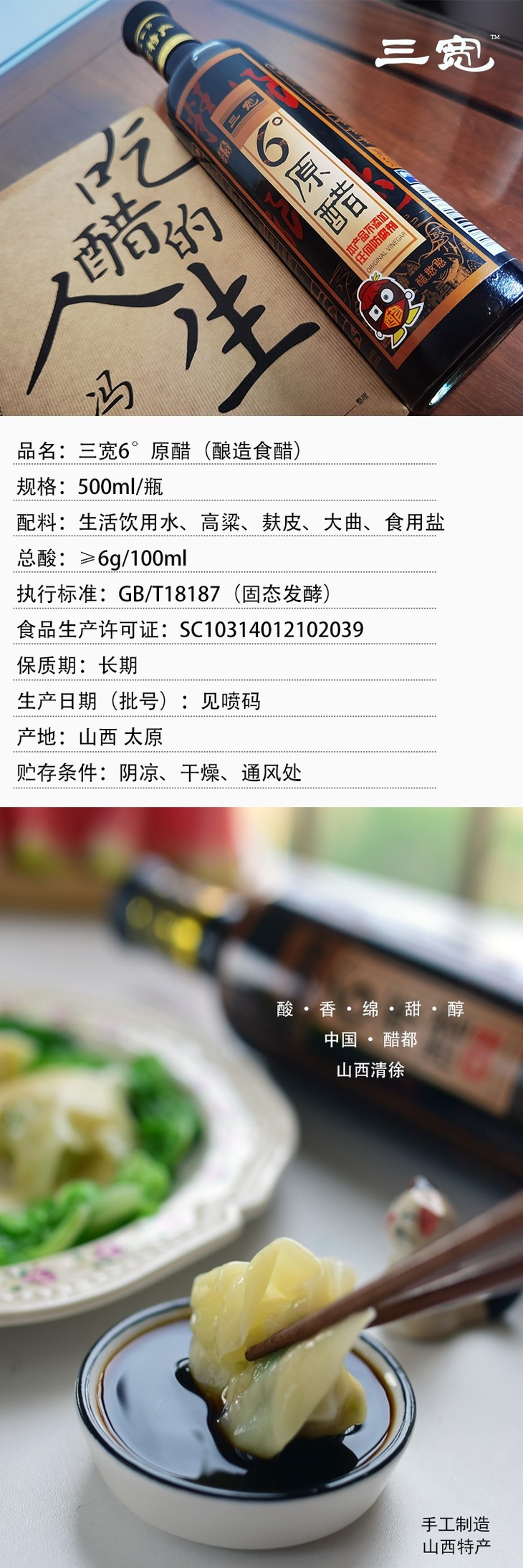 【品名】山西老陈醋(三宽6°原醋)