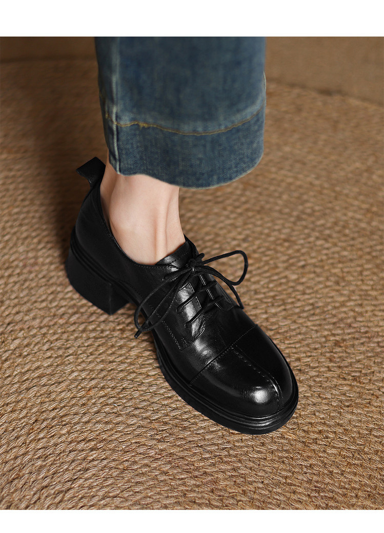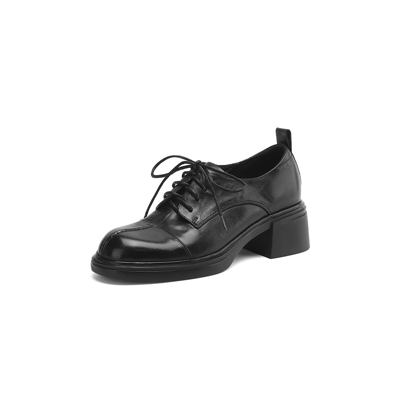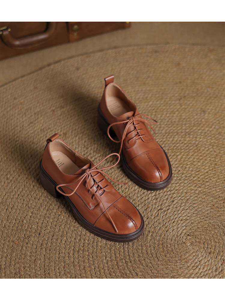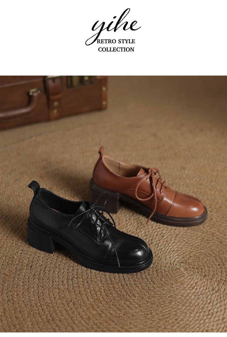 【预售5天】英伦风圆头高跟系带小皮鞋女款2026新款复古真皮厚底粗跟深口单鞋NGMZR&N72-39