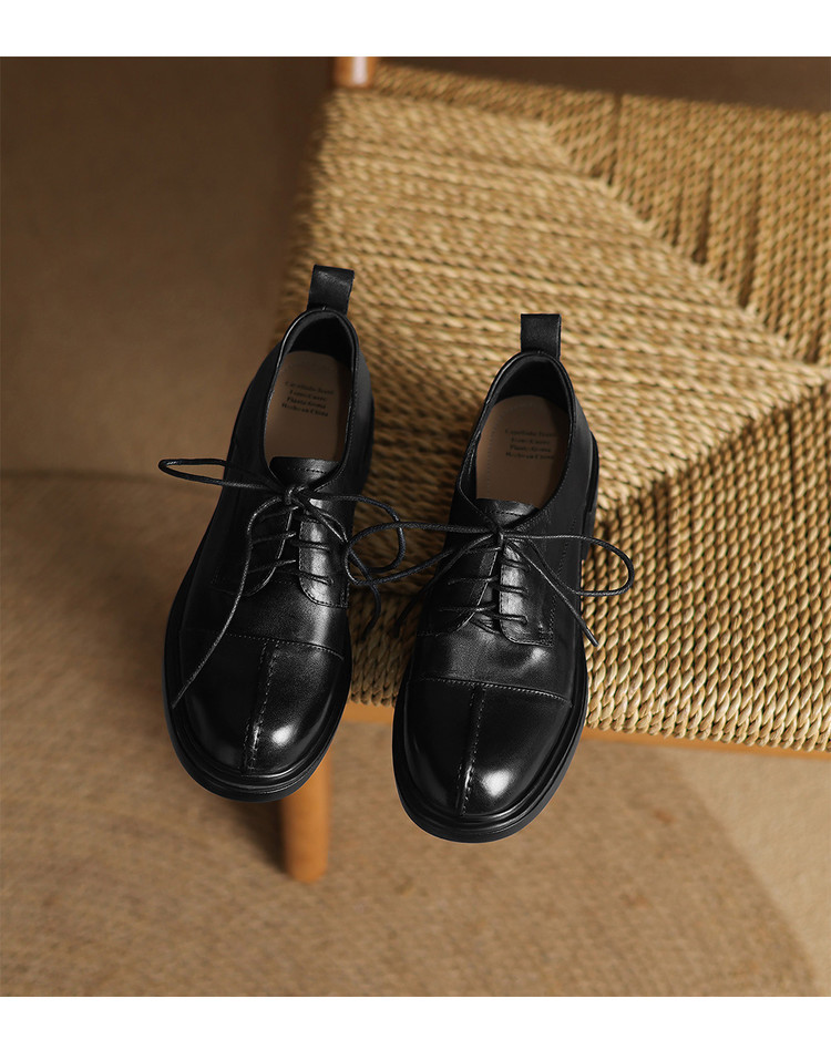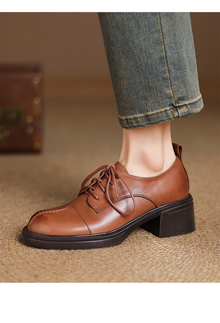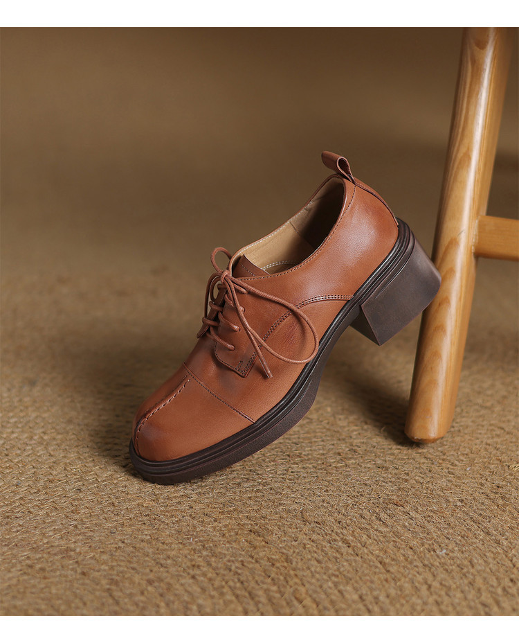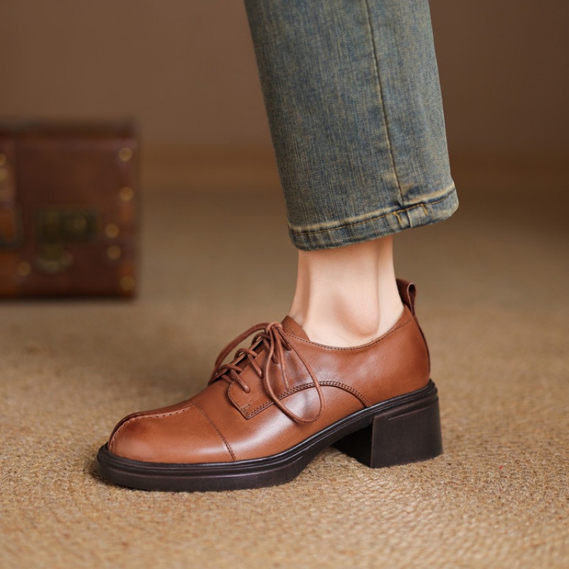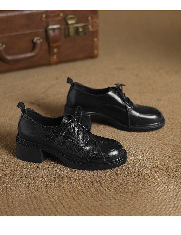 【预售5天】英伦风圆头高跟系带小皮鞋女款2026新款复古真皮厚底粗跟深口单鞋NGMZR&N72-39