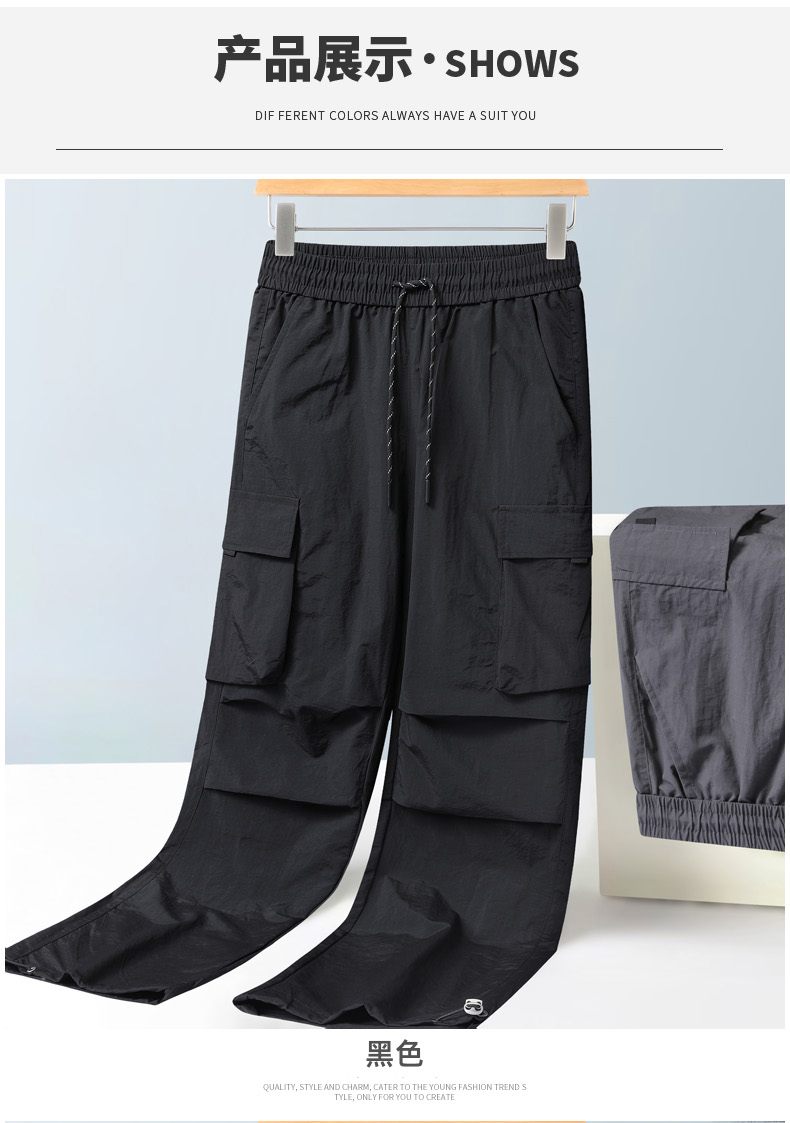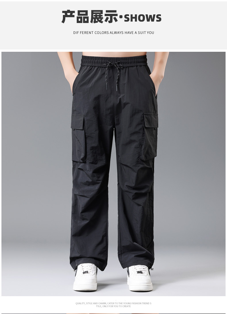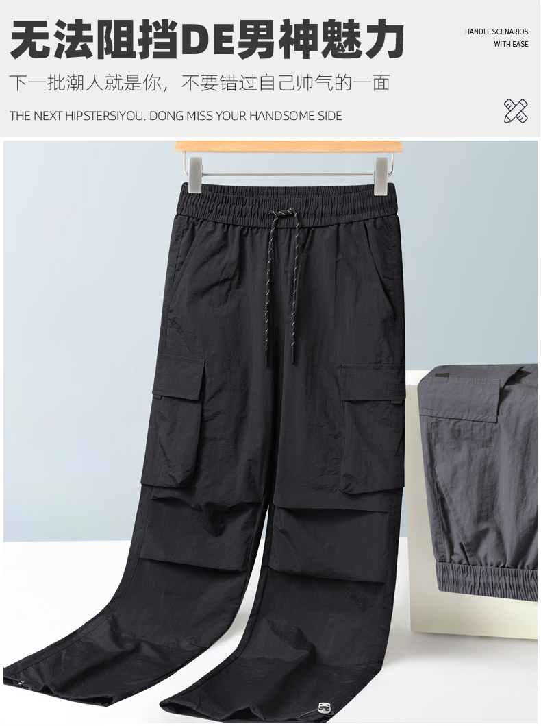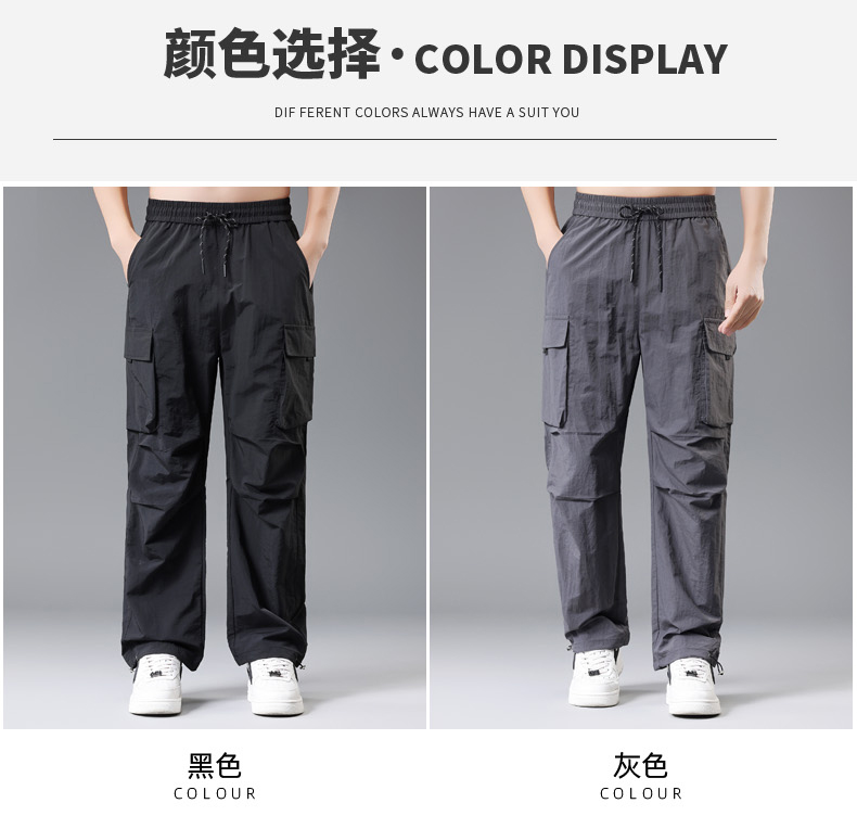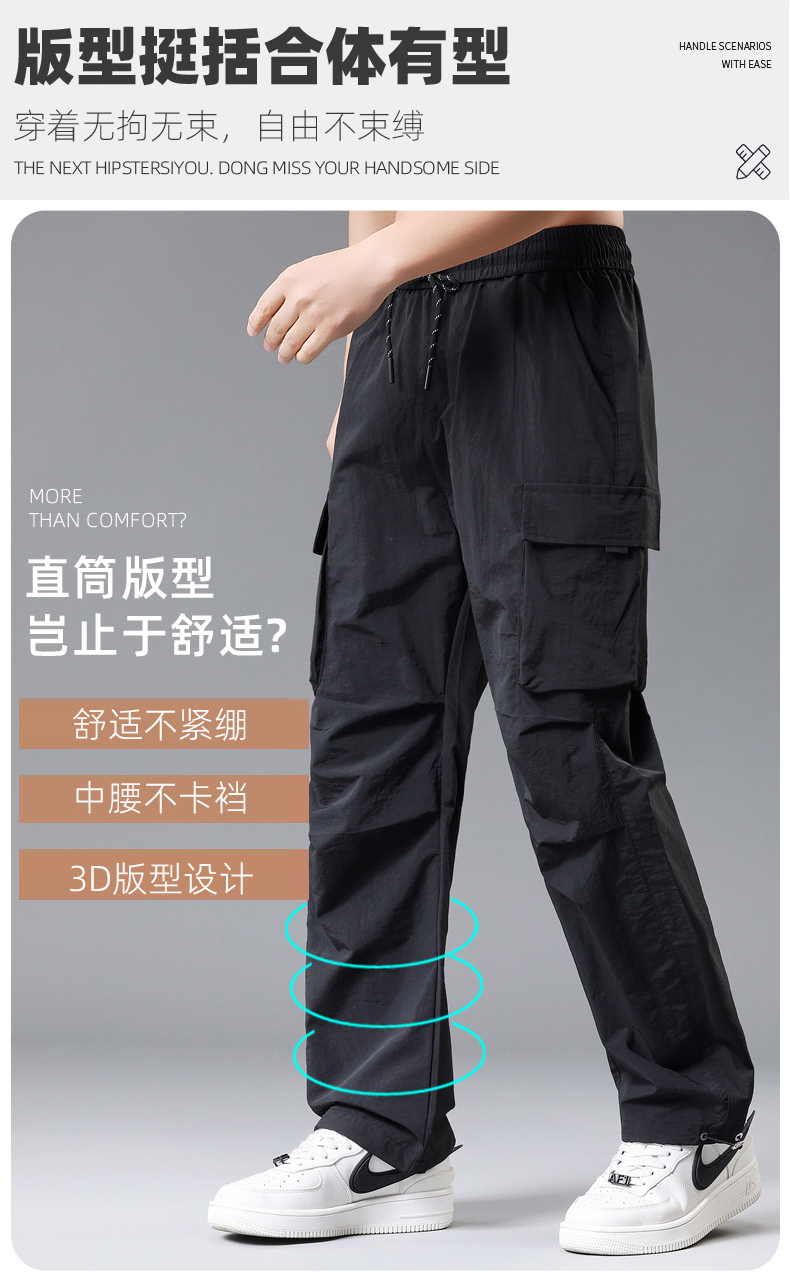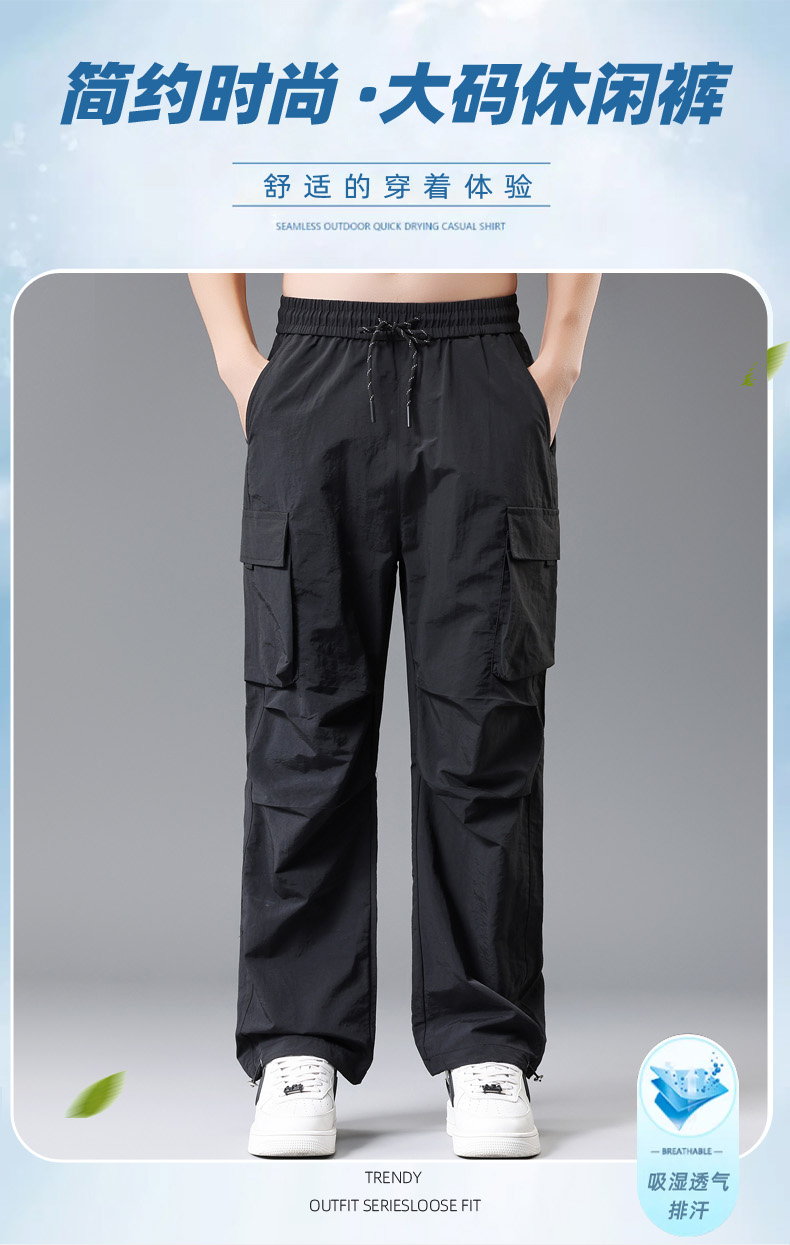 【DH】大依优型大码速干松紧腰直口休闲工装裤直筒加肥加大长裤胖子裤子夏季