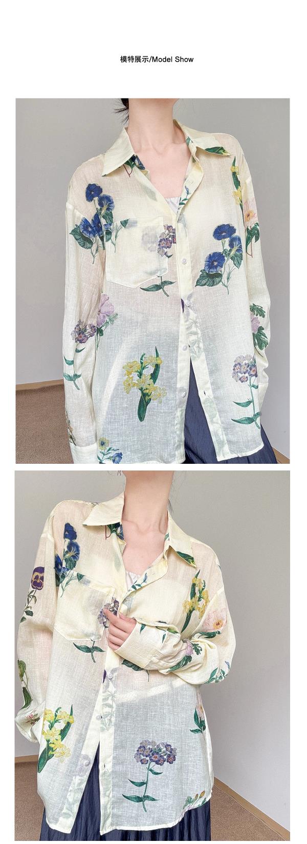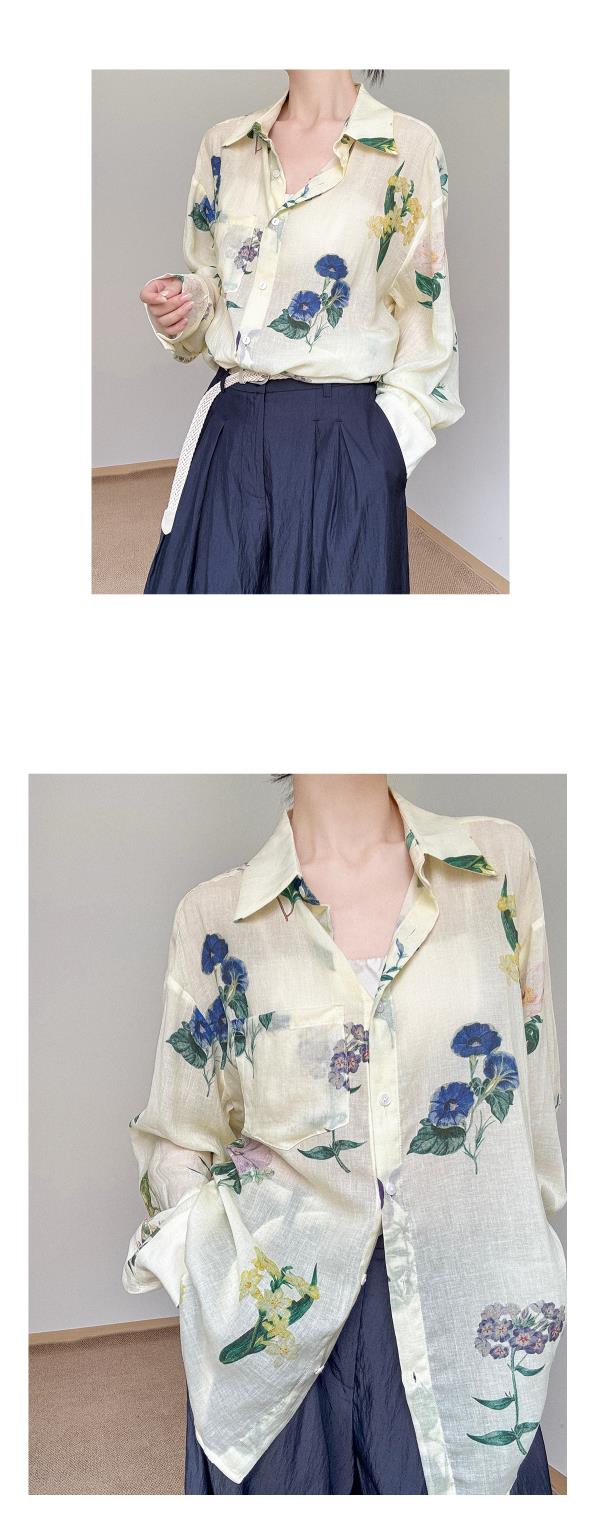 奥篇花仙子 法式宽松休闲高级感碎花衬衫质感100苎麻花卉防晒衫衬衫