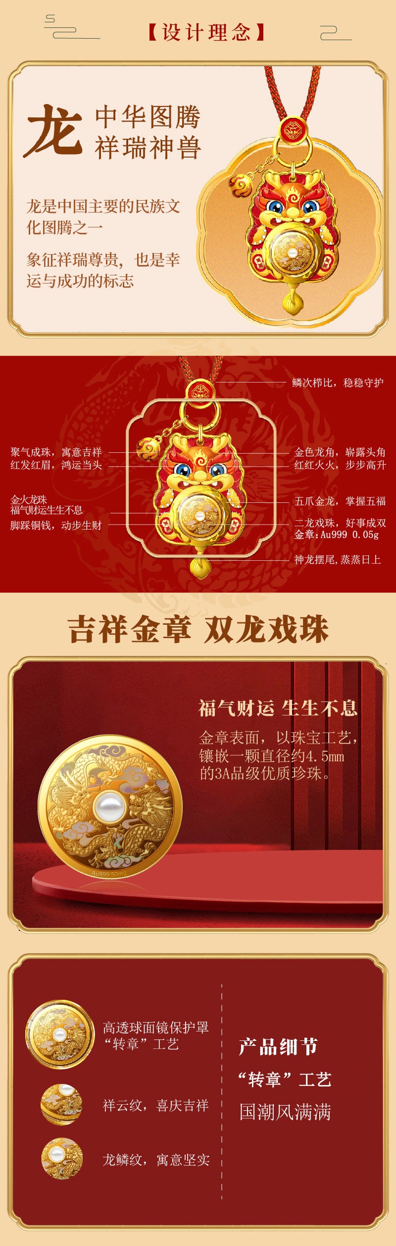 福运龙·平安符 纯金挂件 车挂 包挂
