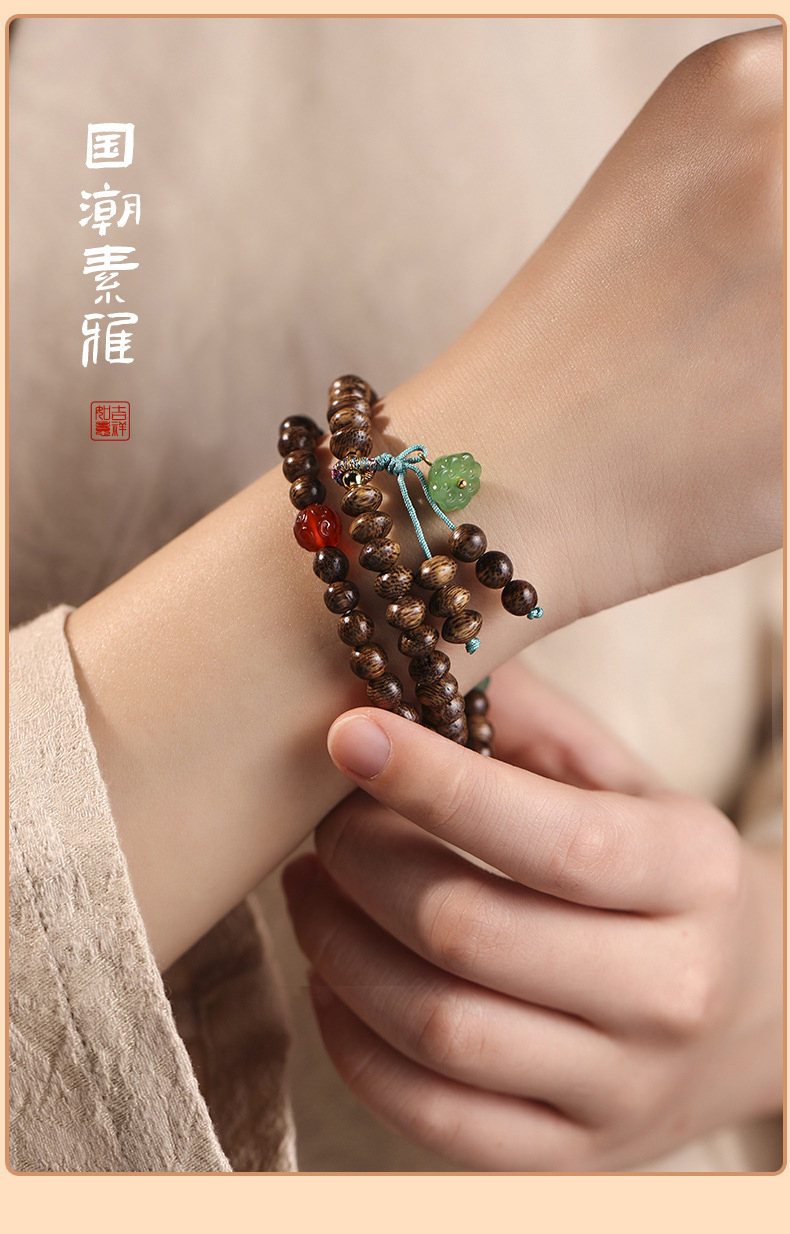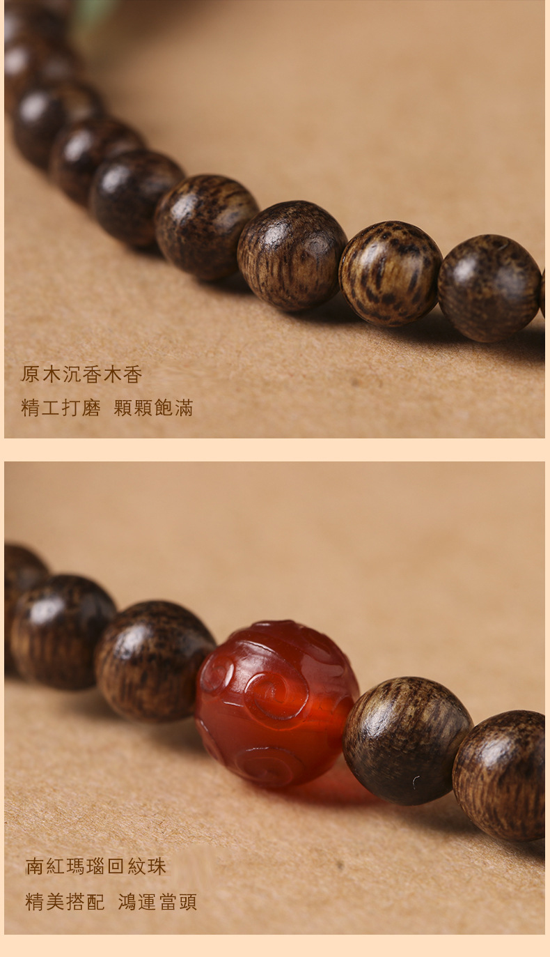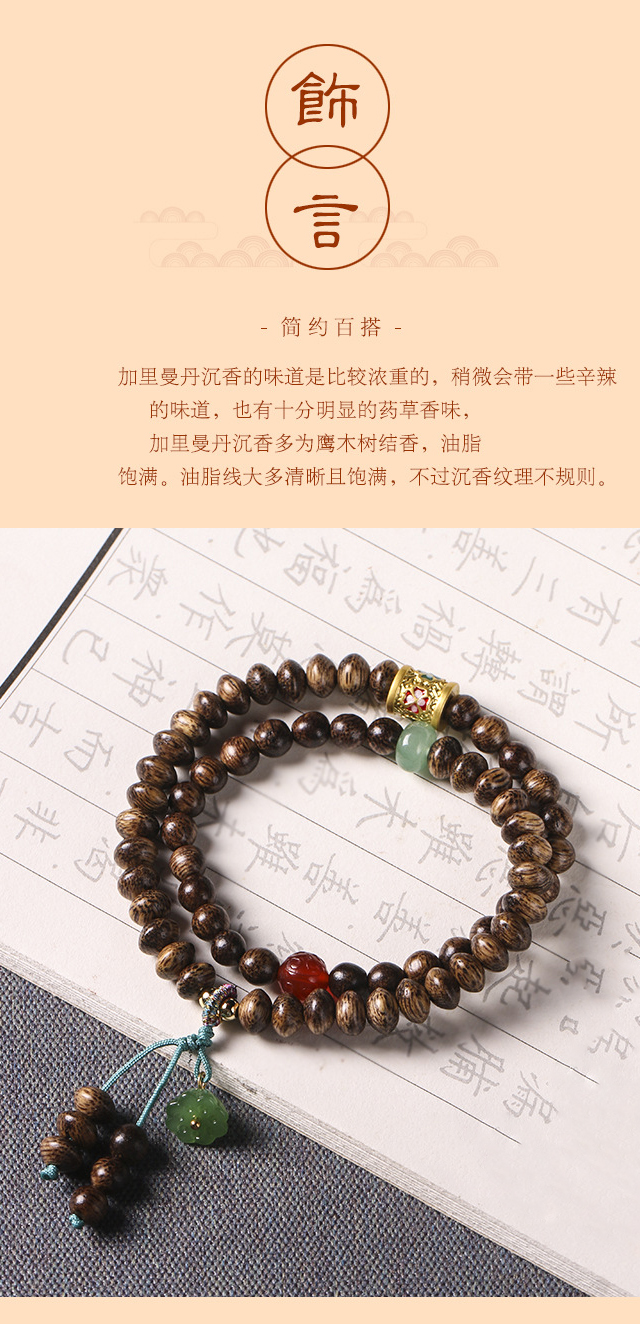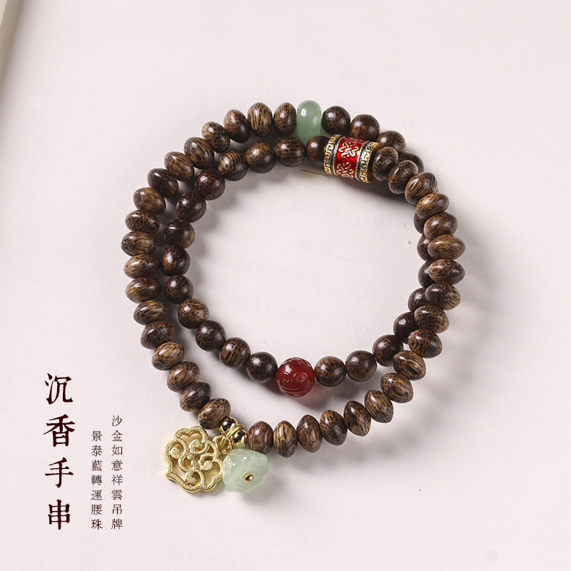 太清沉香木算盘珠双圈玉石小莲蓬手串