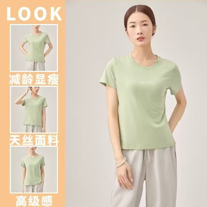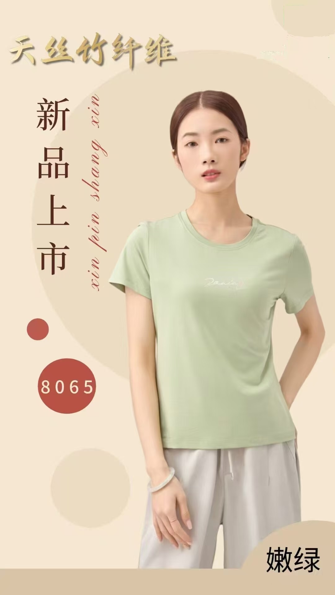 【品名】FF竹纤维女士前胸印字圆领休闲短袖8065